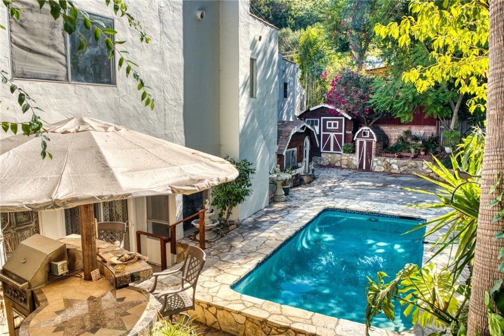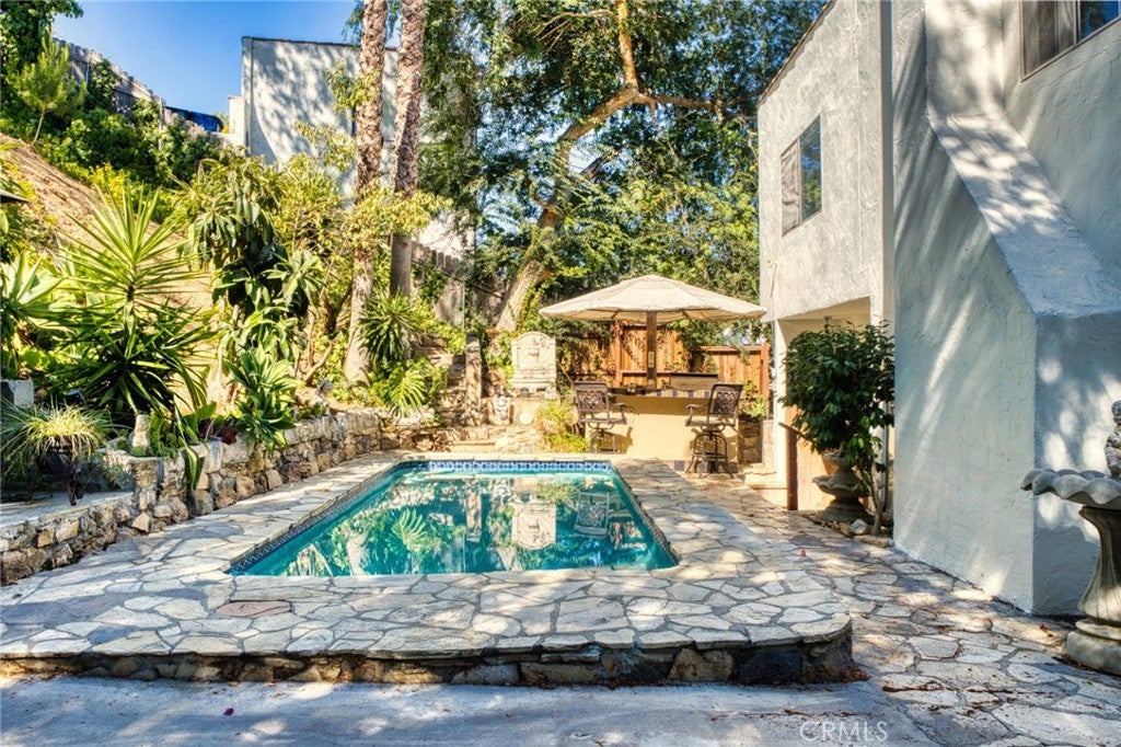 Can you believe this? Not only was this an awesome buy to start with, but the seller has just REDUCED it by $300,000! Look at the size and the LOCATION! First time on the market in over 70 years! This 1927 Spanish Revival in the coveted Los Feliz Oaks features 5 bedrooms, 3 baths, a newly updated kitchen and upstairs bathrooms. The primary suite features a private en-suite bath, while a cedar-lined hallway closet and built-ins in most closets speak to the thoughtful design and craftsmanship of the era. Set on two lush lots with a private pool framed by hand-placed Palos Verde rockwork, it's a rare blend of history and craftsmanship. Freshly Painted, inside and out. All this and a two-car garage for off-street parking, don’t miss this rare opportunity to own your own vintage Hollywood Hills home!