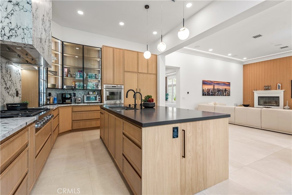 The Oaks of Calabasas! This designer sharp, and rarely available single story home has been beautifully upgraded throughout. The home merges classic elegance with chic California style. Highlights include a gorgeous newer chef's kitchen featuring an expansive entertainer's island with countertop seating, plus an adjoining breakfast area. all flowing seamlessly into generous family room that opens to the beautifully landscaped rear grounds, plus there is a spacious living & dining room combination for casual entertaining. The primary suite is spacious and features a deluxe, all stone bath with dual vanities and oversize walk-in custom closets. There is also a bonus room that would make a perfect office or gym. The lush grounds include a large, professionally designed patio entertainment area complete with sound system, outdoor kitchen, ceiling fans and T.V. The backyard also offers two nice grassy areas with mature fruit trees, and room for a future pool if desired. Don't miss this rare and truly gorgeous one-story residence.