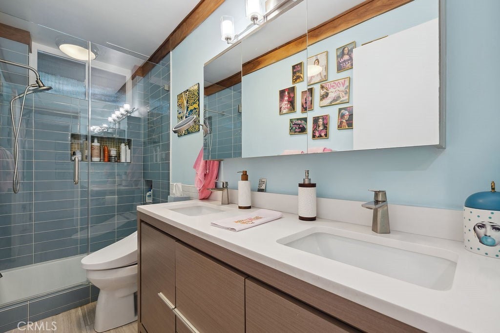 Welcome to this rare gem in the heart of Sawtelle-Japantown, where culture, community, and convenience converge! This stylish 2-bed, 2-bath condo offers 1,028 sq ft of modern living with a PRIVATE first-floor entrance straight from the sidewalk, perfect for walkable city living. Inside, enjoy a sunken living room with fireplace and patio access, beautiful vinyl flooring, LED lighting throughout, new double-pane vinyl windows for improved insulation. Mid-century inspired galley kitchen with stainless steel appliances, a farm sink, and eye-catching cabinetry that adds both flair and function. The dining area connects seamlessly with a chic bartop for easy entertaining, while both bedrooms offer privacy and charm—especially the primary suite with a walk-in closet, wood shutters, and spa-like bath with dual sinks and soaking tub. Two gated parking spaces, indoor laundry, central air & heat with an upgraded AC condenser, and low HOA under $300/month round out this unbeatable package. And the location? Tucked between Westwood, Brentwood, and Wilshire, just minutes from San Vicente, Century City, and the beach—with top-rated restaurants, shops, and amenities just steps away. This isn’t just a home—it’s an experience in one of LA’s most vibrant, community-driven neighborhoods. Don’t miss your chance to claim it!