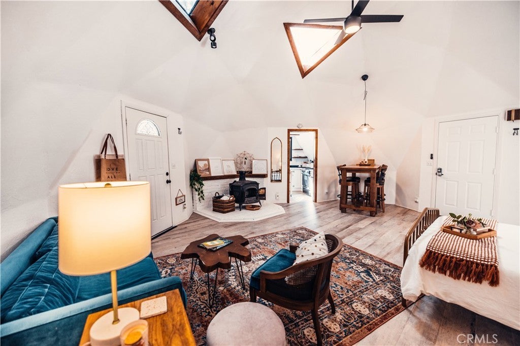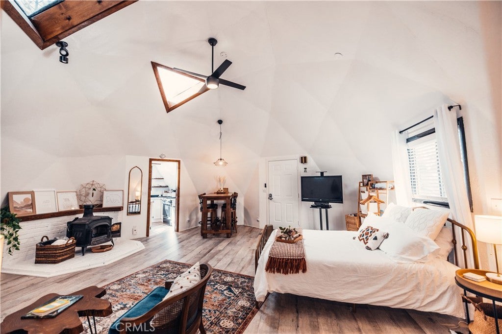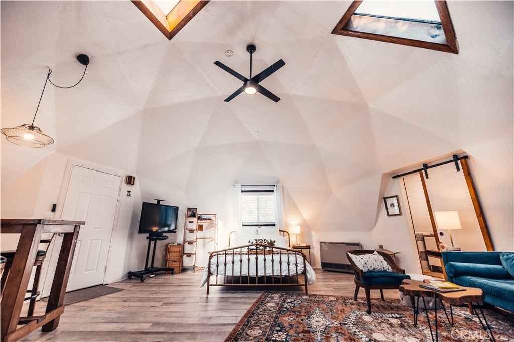 Discover an incredible opportunity to own a one-of-a-kind mountain escape! Nestled in a serene setting, The Sugar Drop Dome is a unique geodesic cabin offering the perfect blend of rustic charm and modern comfort. With 14-foot ceilings and wood-look laminate flooring, this architectural gem feels spacious, warm, and inviting. Step outside onto the newer composite wood deck and take in the fresh mountain air, or cozy up inside by the eco-friendly stove. The property also features ample storage with multiple sheds and a large driveway for easy access and guest parking. Located just a short drive from top local attractions including the lake, ski resorts, and scenic hiking trails, this home is ideal as a personal retreat or a short-term rental investment. Some furniture items can be included in the sale!