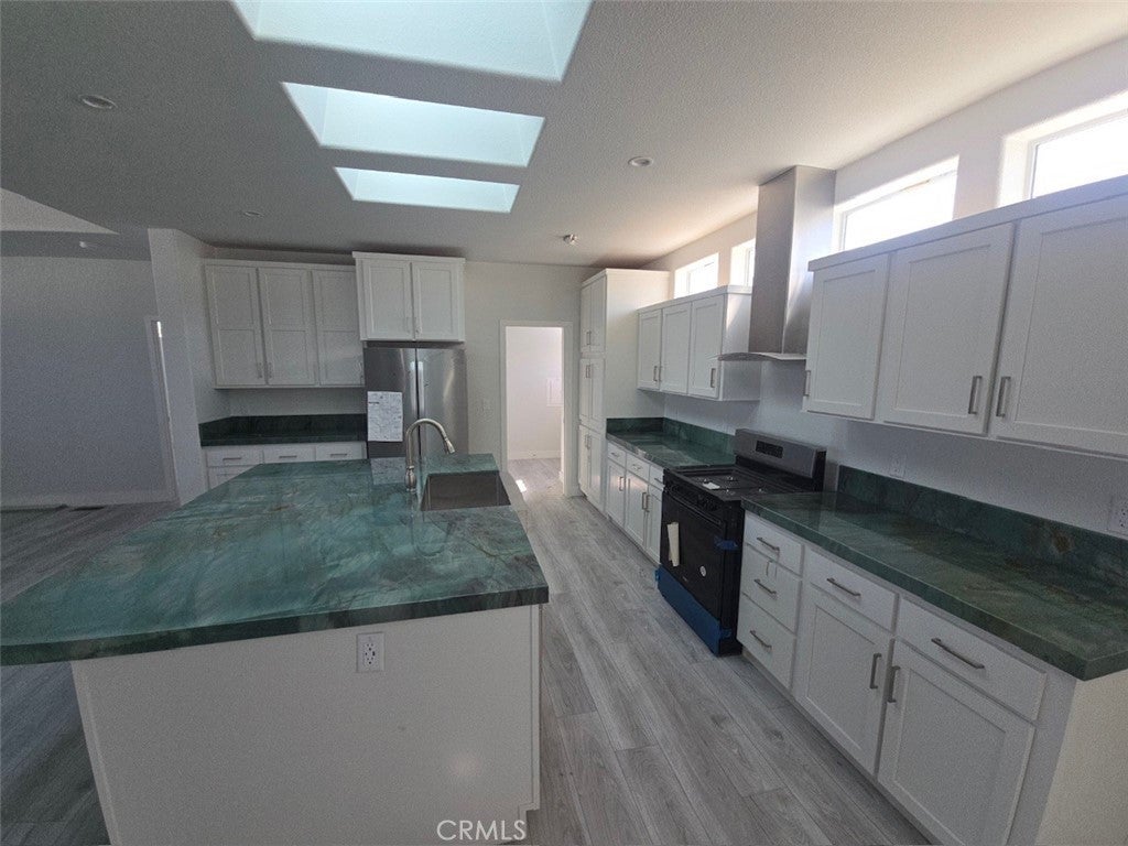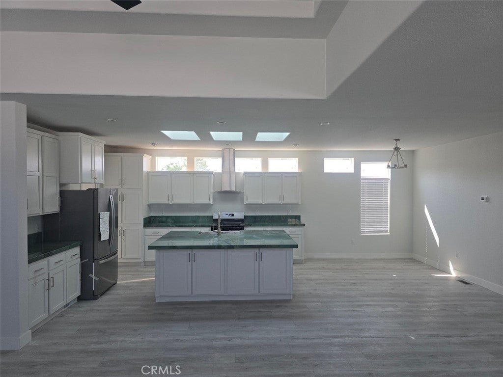 Brand New Architectural space-age 2000 square foot manufactured home. Up to 12 foot tall ceiling. 4 large bedrooms, 3 full opulent spa-like bathrooms. Entire home bathed in light, encircled with windows just below roof line. 2 separate master bedroom, master bathroom suites. Bedrooms separated by 40 feet, offering great privacy. Like having 2 separate houses in 1 house. Chef’s island kitchen, breathtaking emerald and orange Quartzite slabs of stone. Endless soft closing cabinets and drawers. Modern high quality appliances. Enormous living room with 12 foot tall coffered ceiling. Huge dining room easily seating 14 people or more. Generous master bedroom featuring great light, great sunset views, and large walk-in closet. Master bathroom is like entering a fine resort spa. Large stone shower. Large soaking tub. 9 foot long vanity featuring Crystallo Quartzite slabs of stone. Brushing your teeth and washing your face above million year old CRYSTALS. Second master bedroom, master bathroom suite on opposite side of home. Large room, tons of light. Spa-like 2nd master bath, with large stone shower with sitting bench, and long vanity featuring Crystallo Quartzite slabs of stone. Brushing your teeth above Crystals. Bedrooms 3 and 4 are large as well. All bedrooms filled with light, and have great closet space. Bathroom 3 features lovely tub/shower and Crystallo Quartzite slab of stone. Large Utility room for all your needs. Up to 4 car covered parking. Up to 6 foot tall fencing permitted. Small back yard. Room for Large covered deck. Incredibly LOW monthly land rent, locked in by Rent Control. Separate storage area to park Boats or R.V.”s for additional 45 dollars per month. Gated, quiet community. Great clubhouse and resort style pool. No h.o.a. dues to pay. No regular property taxes to pay.