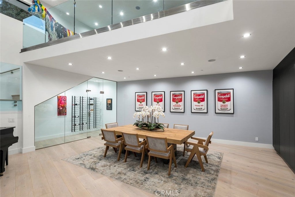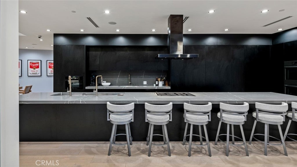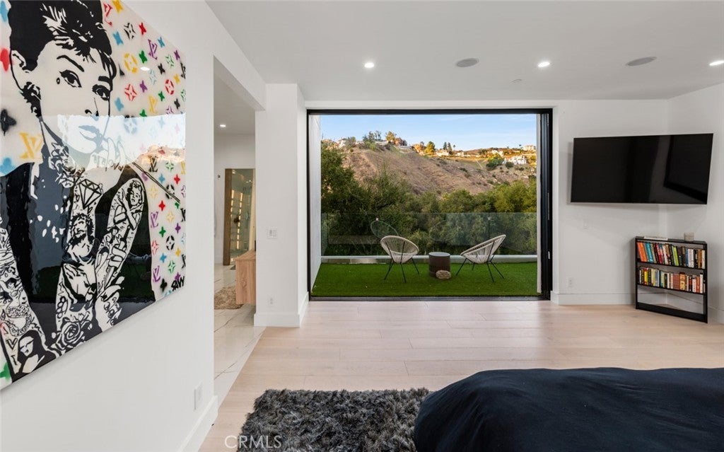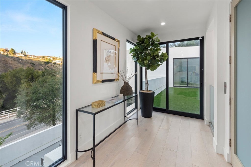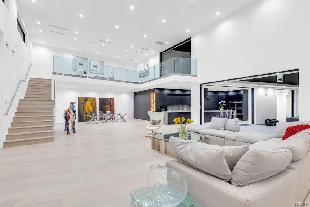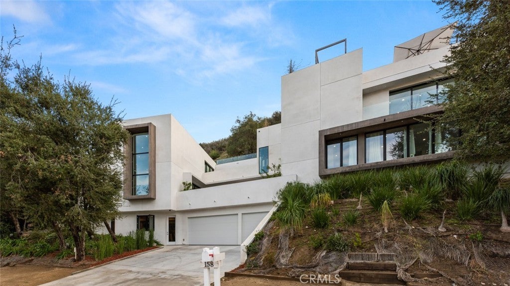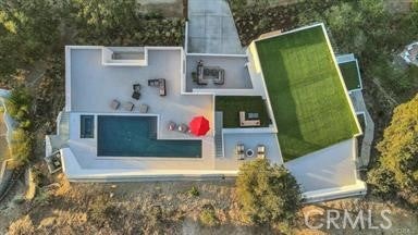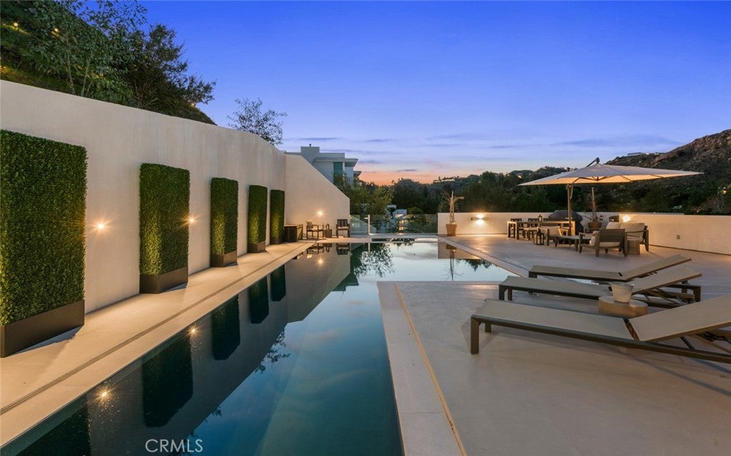 Exquisite Modern Masterpiece in Prestigious Bell Canyon Step into a furnished, meticulously designed modern home where exquisite architectural attention to detail meets luxury living. Enjoy high ceilings and abundant natural light in the expansive living areas. Entertain guests in a spacious kitchen with an inviting quartz top center island, contemporary cabinetry, and premium appliances, including quadruple Bosch ovens, a Viking Thermador refrigerator, and double sinks. The boundlessly open living room features floor-to-ceiling glass pocket doors for seamless indoor/outdoor flow, a glass-enclosed illuminated wine cellar under the stairway, and a 22ft by 20ft 5k Laser projector for watching your favorite games or movies. Ascend to the upper level via stairway or elevator to find a chic primary bedroom with a floor-to-ceiling glass window offering picturesque views of serene greenery and mountains. The suite includes an abundant walk-in closet and a sleek master bathroom with an enormous shower and a separate romantic tub. The massive rooftop deck boasts unobstructed mountain and sunset views, an invigorating in-ground pool, and a spa surrounded by lush green mountains. The lower level houses a full gym with a private entrance and bath that can be converted into a private office or movie theater. Located in the prestigious 24-hour, guard-gated community of Bell Canyon, renowned for its equestrian center, private parks, hiking trails, tennis courts, community center, and award-winning LVUSD schools.