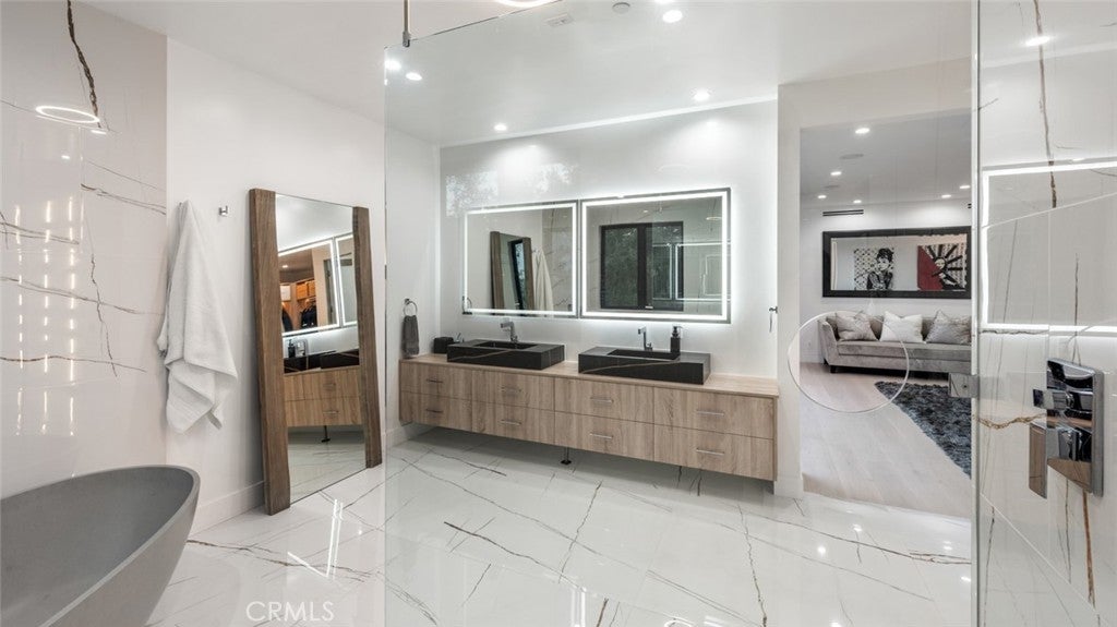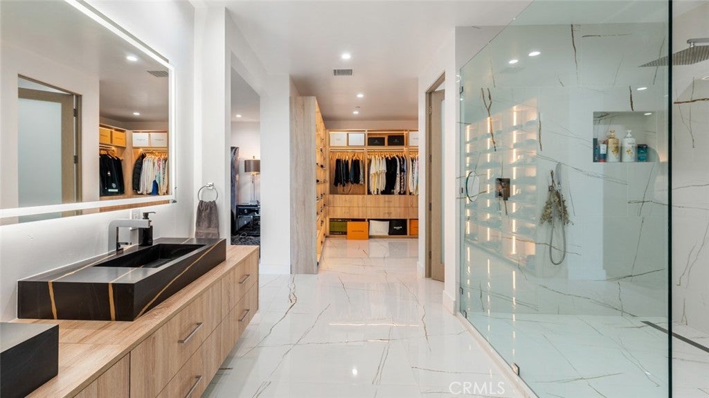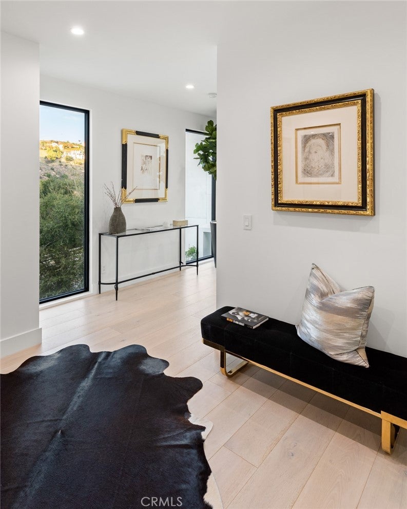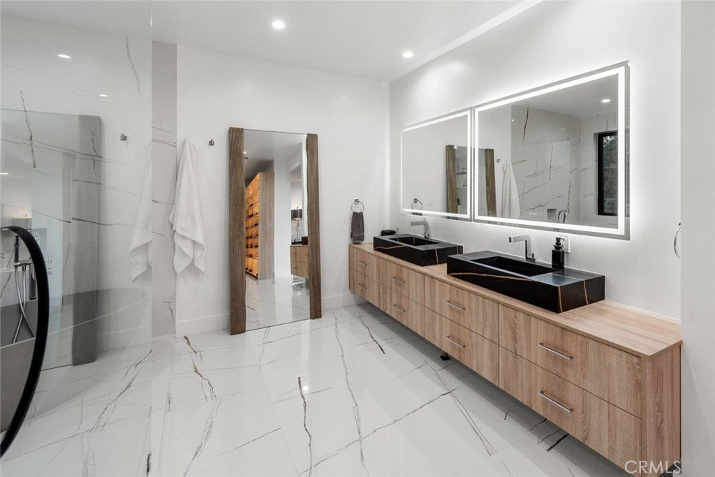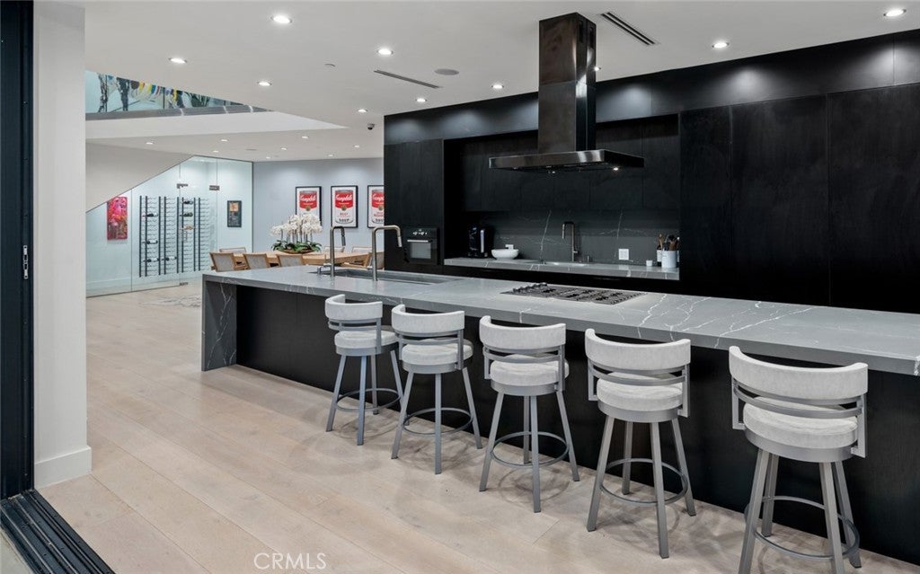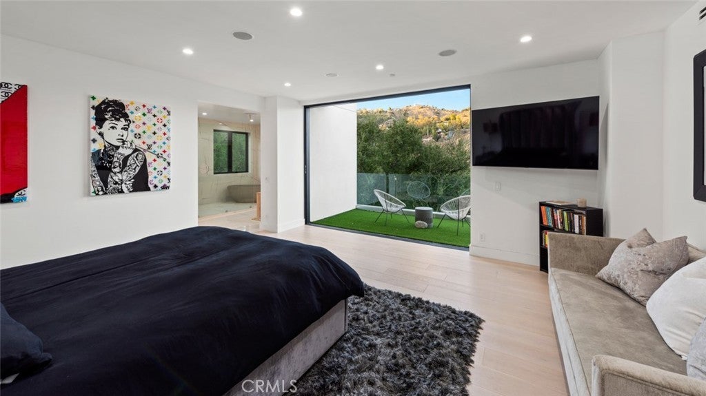 Exquisite Modern Masterpiece in Prestigious Bell Canyon Step into a furnished, meticulously designed modern home where exquisite architectural attention to detail meets luxury living. Enjoy high ceilings and abundant natural light in the expansive living areas. Entertain guests in a spacious kitchen with an inviting quartz top center island, contemporary cabinetry, and premium appliances, including quadruple Bosch ovens, a Viking Thermador refrigerator, and double sinks. The boundlessly open living room features floor-to-ceiling glass pocket doors for seamless indoor/outdoor flow, a glass-enclosed illuminated wine cellar under the stairway, and a 22ft by 20ft 5k Laser projector for watching your favorite games or movies. Ascend to the upper level via stairway or elevator to find a chic primary bedroom with a floor-to-ceiling glass window offering picturesque views of serene greenery and mountains. The suite includes an abundant walk-in closet and a sleek master bathroom with an enormous shower and a separate romantic tub. The massive rooftop deck boasts unobstructed mountain and sunset views, an invigorating in-ground pool, and a spa surrounded by lush green mountains. The lower level houses a full gym with a private entrance and bath that can be converted into a private office or movie theater. Located in the prestigious 24-hour, guard-gated community of Bell Canyon, renowned for its equestrian center, private parks, hiking trails, tennis courts, community center, and award-winning LVUSD schools.