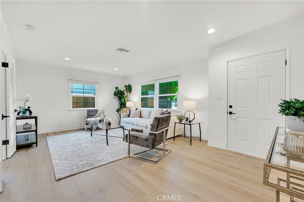 Freshly updated and reimagined mid-century bungalow with detached garage and studio/guesthouse in prime Woodland Hills location! Remodeled and renovated! Main house plus separate studio/guesthouse with bathroom and a garage. Highlights include tri-pane windows, brand new flooring, fresh paint, brand new wall mounted AC system with new ducts, all new appliances, and new landscaping throughout! Master bedroom beautifully updated, with huge walk-in closet. New, stylish wood fencing around the property provides security and privacy. Ample room for pets. Updated landscaping, front and back, makes use of towering shade trees, lush artificial/no water turf, and well landscaped low maintenance garden that creates a relaxing environment to enjoy or entertain outdoors. Enter into an elegant living room with recessed lighting which flows into the kitchen with sunny breakfast nook with wainscoting. The kitchen has been redone with brand new white cabinets, white quartz counters, tumbled marble backsplash, farmhouse sink and new stainless-steel appliances. Down the hallway is an updated full bath, with white quartz vanity and dual shower heads and two bedrooms, and new, central, stacking washer and dryer. Bronze fixtures and hardware throughout. The large, enclosed, lanai/master bedroom is equipped with a brand-new split system AC unit, oversized walk-in closet space, with direct access to the large backyard. The detached studio/guesthouse with bathroom includes a garage with a new garage door and would make a great ADU. The airy studio/guesthouse has cathedral ceilings, new skylights, new split system AC, and decorative white wainscotting. It includes a brand-new kitchen area with all new appliances, full bath, and ample room for a bedroom area, living area, and space for dining, as well as direct access to the attached garage space and private shaded outdoor patio. There is a 2nd set of laundry hookups in the garage. Wonderfully situated near shopping, dining, entertainment, recreation, great schools including Hale and El Camino, the Westfield Topanga Mall and Village, Calabasas Commons, Warner Center, and so much more!