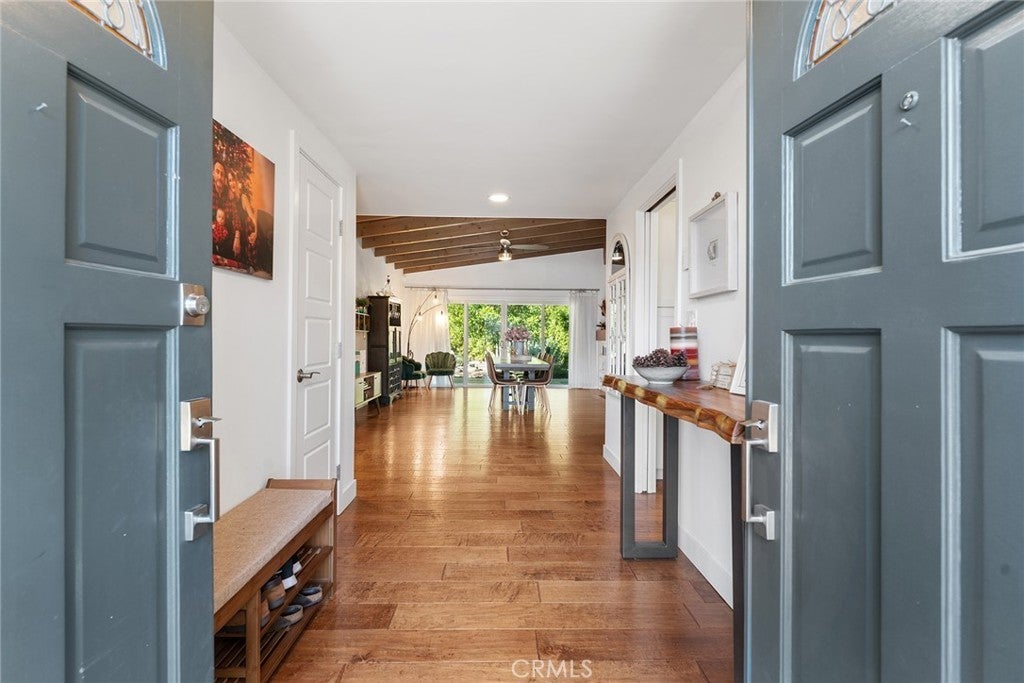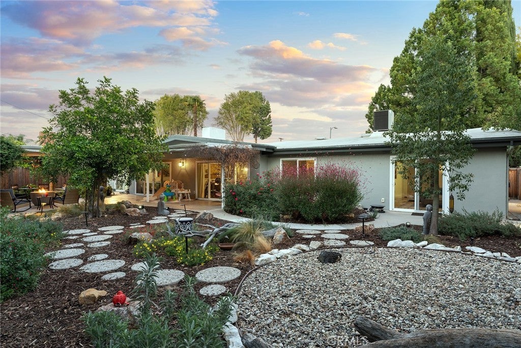This exquisitely restored mid-century modern masterpiece, crafted by the acclaimed architect Charles Du Bois, epitomizes elegance and sophistication while harmonizing timeless design with impeccable modern enhancements. Perfectly situated on a serene, tree-lined street, this oasis invites you into a world of refined living with its expansive open floor plan, soaring vaulted ceilings, and a striking double-sided fireplace that exudes warmth and grandeur. The chef’s kitchen is a work of art, outfitted with top-of-the-line stainless steel appliances, sleek stone countertops, and custom cabinetry, making it an entertainer’s dream. The spacious dining and living areas, bathed in natural light, seamlessly transition to the meticulously designed backyard, creating an unparalleled indoor-outdoor living experience. The home offers five sumptuous bedrooms, including a versatile 5th bedroom or executive office, and a serene primary suite featuring bespoke closets and a lavish en-suite bath adorned with premium finishes. Step into the private backyard oasis, where drought-tolerant landscaping, a chic firepit, and lush fruit trees provide the perfect backdrop for relaxation or sophisticated entertaining. Thoughtful upgrades include engineered hardwood floors, cutting-edge smart home technology, and energy-efficient enhancements that cater to modern luxury living. Located in the prestigious Calabash, Hale, and El Camino school district and just minutes from the scenic Malibu coastline, this exceptional property is a short stroll to high-end boutiques, gourmet dining, and the iconic Old Town Calabasas Farmers Market. The property offers an unparalleled lifestyle of comfort, luxury, and convenience.