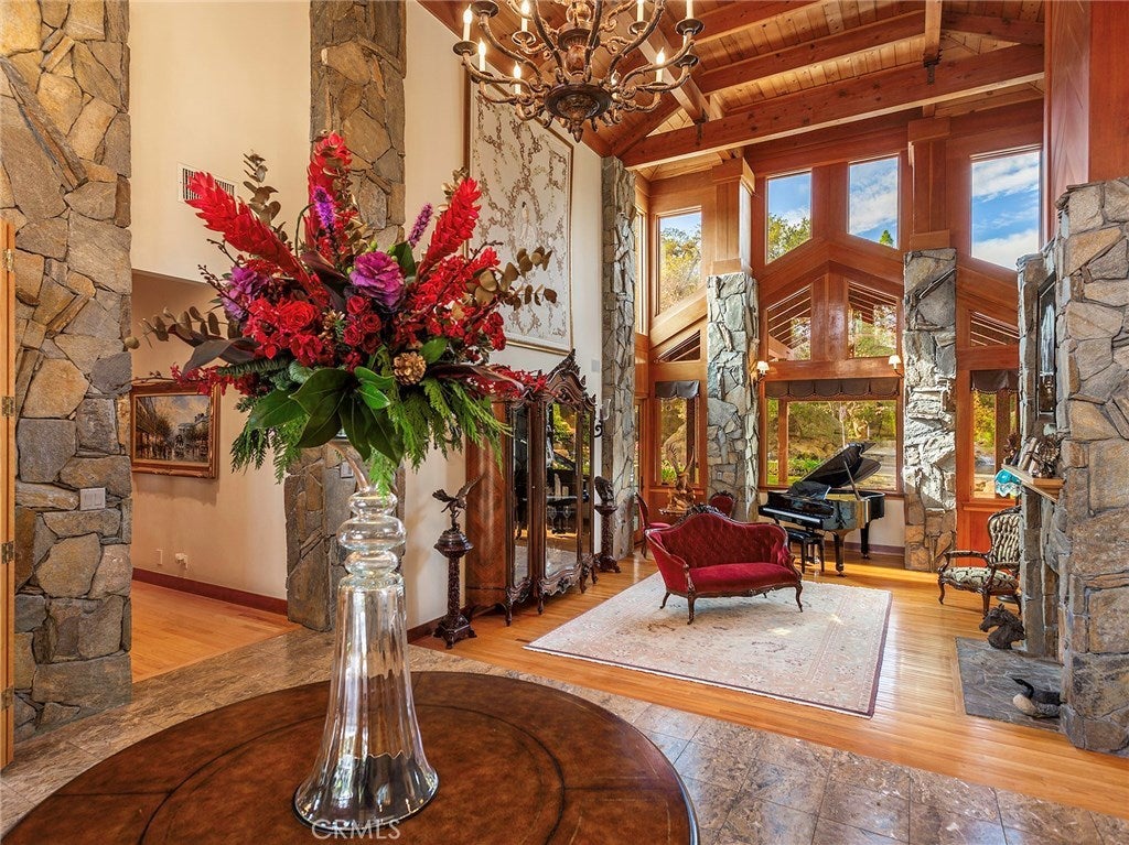 Beamed Ceilings, Built-in Features, Balcony, Breakfast Area, Cathedral Ceiling(s), Coffered Ceiling(s), Separate/Formal Dining Room, Granite Counters, High Ceilings, Open Floorplan, Pantry, Recessed Lighting, Smart Home, Bar, Wired for Sound, Primary Suite, Walk-In Pantry, Wine Cellar, Walk-In Closet(s)