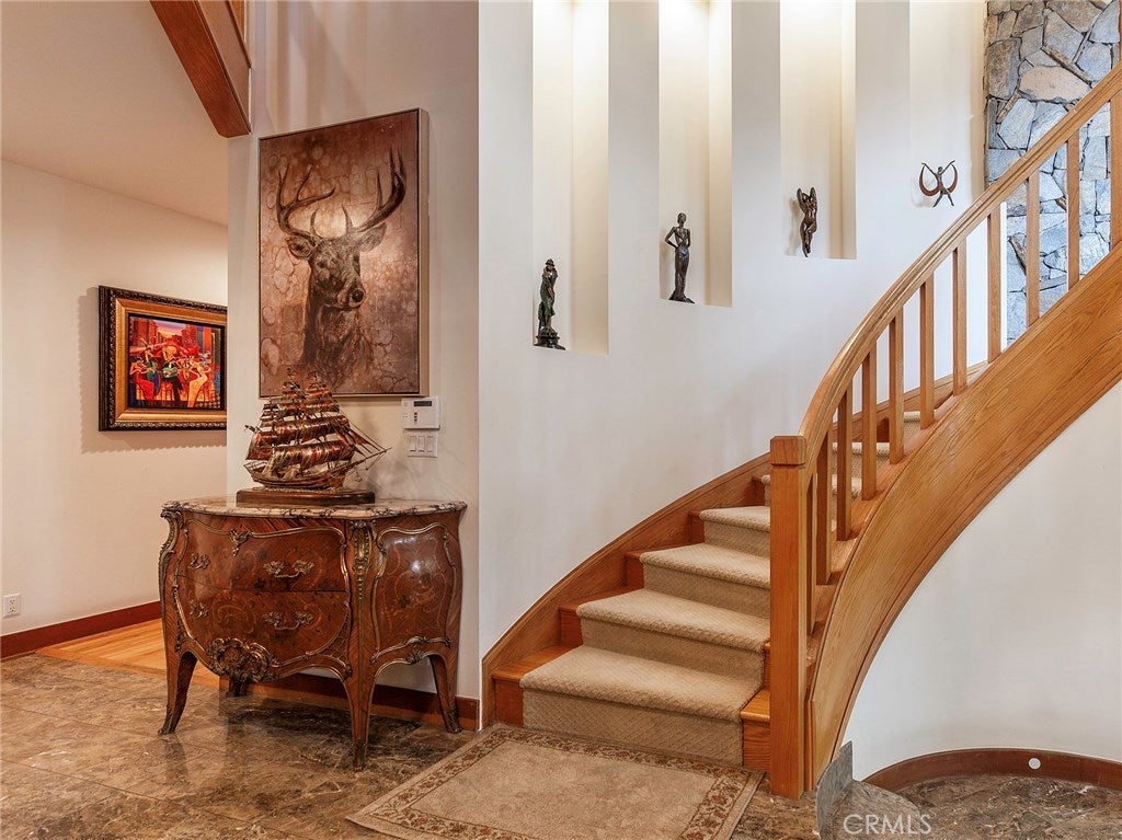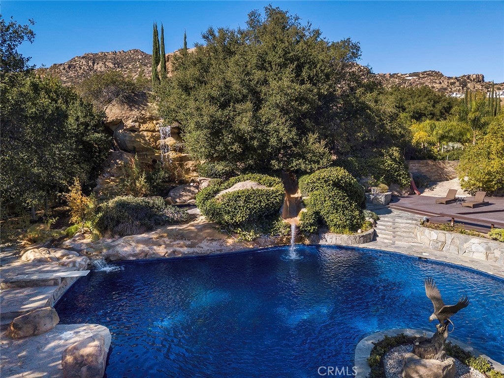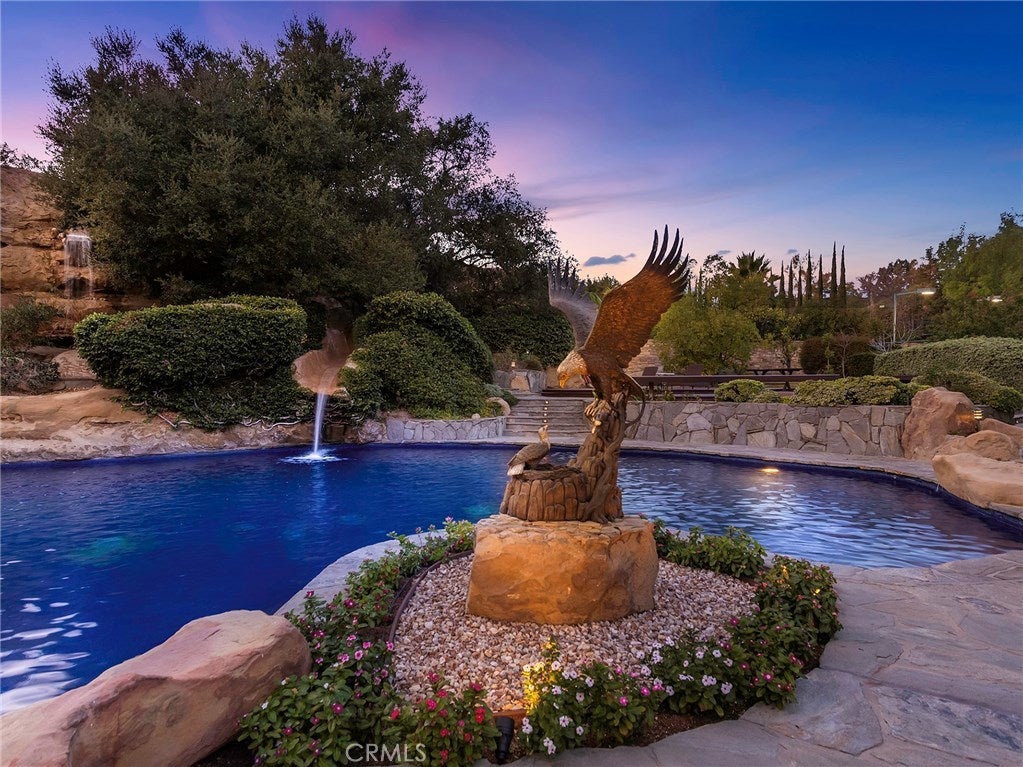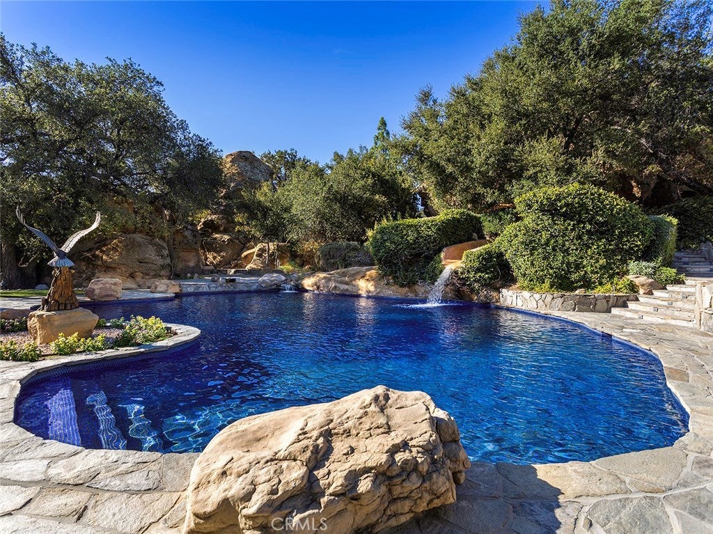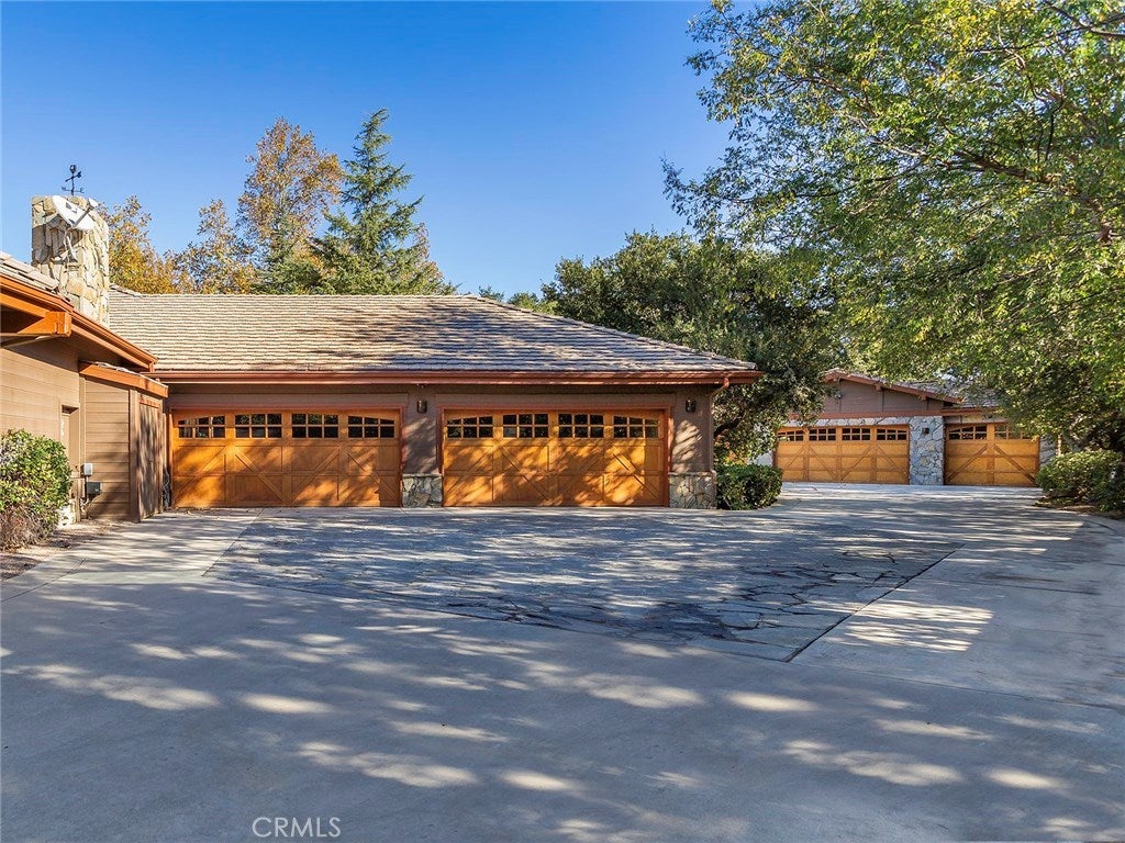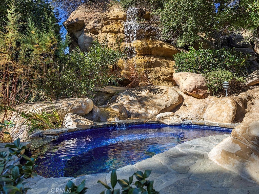 Vacation living all year round. Quiet and private. Set behind private gates & down a long driveway sits this amazing, 6 bed, 6 ½ bath, almost 8,500 square foot estate. Grand architecture with craftsman details. Enormous Great Room/Game Room featuring a wet-bar, built in entertainment center & double-sided stone fireplace with inglenook seating. The remodeled kitchen has granite counter tops, large center island, high-end stainless steel appliances, butler’s pantry & large walk-in pantry. There is also a large wine cellar. The Owner's suite encompasses the entire upstairs & incl. built-in dual desks, stone fireplace, dual closets, large balcony & exquisite bath with dual vanities, jetted tub & steam shower. No luxury has been overlooked. The additional 5 bedrooms are on the main level & in each you will find a walk-in closet &en-suite bath. Garage parking for 8 cars plus additional RV and motorcycle parking. The approx. 2 ½ acre lot incl. a lighted N/S Tennis Court w/ covered viewing pavilion, fire pit, pitch & putt golf course,Dual BBQ Center & a truly breathtaking fully-tiled pool & spa crowned with a waterfall that cascades from natural rock formations. Truly a resort, no detail was overlooked, no amenity is lacking, and this estate is exceptional in every way. Coveted 24-hour guard gated neighborhood is convenient to 118-fwy, dining, and entertainment.