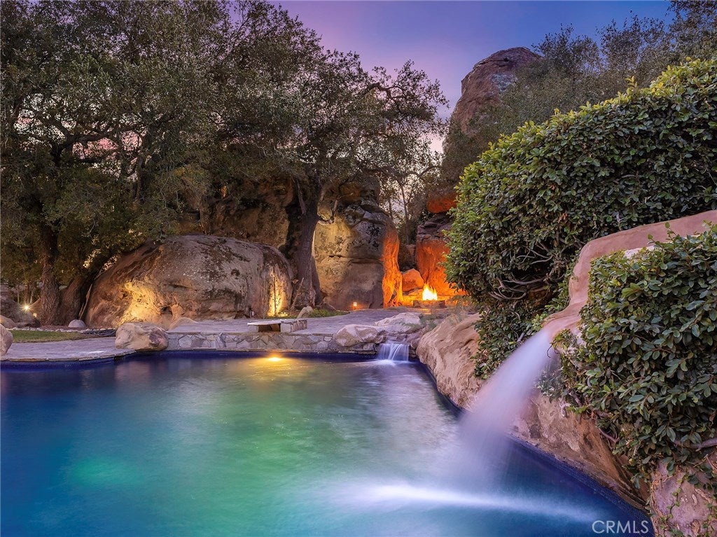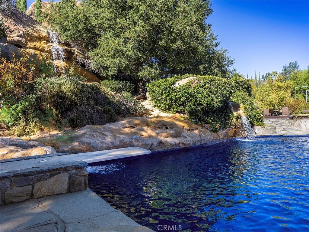 Diving Board, Filtered, Gas Heat, Heated, In Ground, Private, Tile, Waterfall