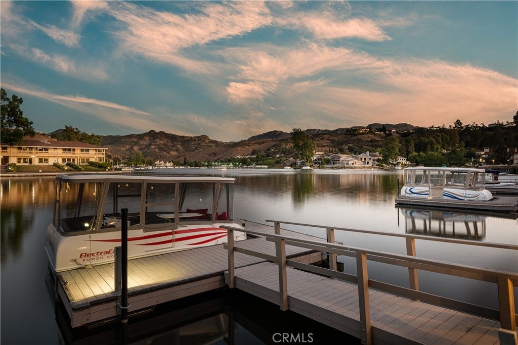 A Hidden gem, Rare Double Lot. This property is within the prestigious guard gated community of Westlake Island, an oasis of beauty & sophistication nestled in the heart of Westlake Village. With over 100 feet on the main channel with breathtaking panoramic views of the marina, rolling hills, and Yacht Club. Situated on a 11,250 sq ft lot, this estate offers unmatched serenity, privacy, and remarkably generous parking. Step inside and experience the natural light streaming through picture windows, illuminating a blank canvas ready to be reimagined into your dream California indoor-outdoor lifestyle. The primary features picturesque windows that showcase the stunning lake and mountain range. The suite also has space for an elevator from the office below. The secondary bedrooms are oversized, conveniently situated near the upstairs laundry room. Outside, indulge in resort-style living with a sparkling pool, spa, built-in BBQ, and a lush grassy yard dotted with mature fig, avocado, and grapefruit trees. Private dock access means sunset cruises and lakeside dinners are only steps away. Nestled in a 24- hour guard-gated community that blends luxury, convenience, and natural beauty, this is more than a home its a lifestyle.