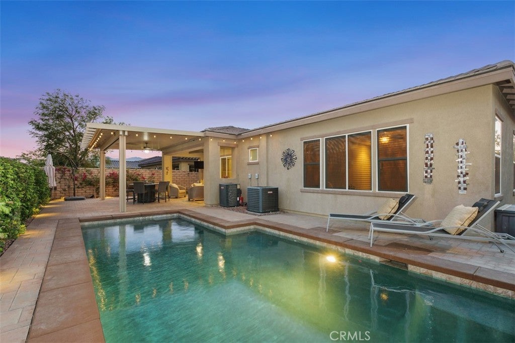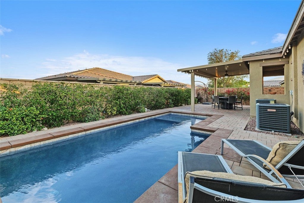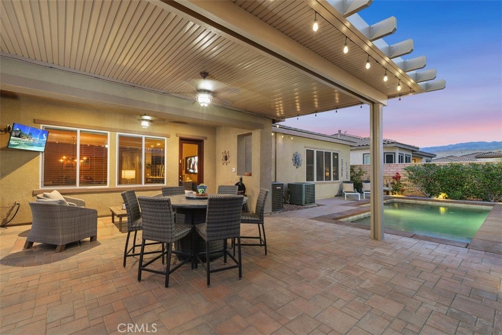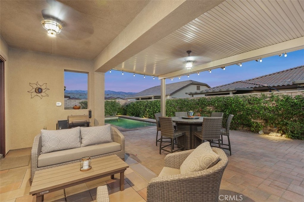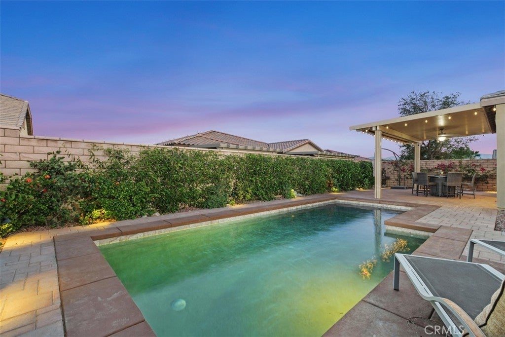 Escape to the tranquil beauty of Casa Terra Lago, nestled within the gated 55+ community of Four Seasons Terra Lago. This charming retreat offers the largest floor plan in the neighborhood with three spacious bedrooms, a versatile den with a pull-out sofa bed, and three full bathrooms. Enjoy a fully furnished interior, an open-concept kitchen and living area, and a private heated saltwater pool with an outdoor TV and firepit—perfect for entertaining or relaxing. The community features resort-style amenities including two golf courses within the Four Seasons Terra Lago community, a clubhouse with indoor/outdoor pools, spa, gym, and courts for tennis, pickleball, basketball, and bocce ball. Located in the heart of Indio, Casa Terra Lago provides convenient access to hiking trails, mountain views, and local attractions. Streaming services provided via high-speed internet; wired for cable TV service. Natural light fills the home, highlighting tasteful furnishings and the home’s spacious layout. The well-appointed kitchen flows seamlessly into a cozy living area, perfect for preparing meals or lounging after a day in the sun. Step outside to your private backyard oasis—featuring a shimmering saltwater pool and built-in BBQ grill ideal for laid-back evenings under the stars. Unwind in peaceful bedrooms after enjoying the community's offerings—from rounds of golf and walks through the neighborhood to relaxing dips in the pool or spa. This home requires a minimum 30 day rental.