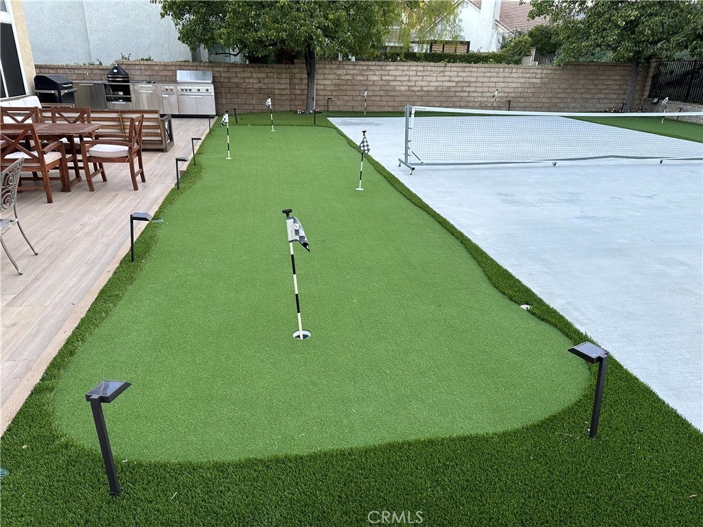 Welcome home to this beautiful 4-bedroom Northbridge house! It has its very own pickleball court, 8-holes of putting golf and NBA size basketball hoop! Just minutes away from the award winning Helmers elementary school and the amazing Northbridge community park, pools, tennis courts, basketball court, clubhouse and walking trails. Almost every bit of the house was remodeled over the last few years. Upon entry, you will find high vaulted ceilings in the spacious living and dining rooms and plantation shutters throughout the home. All the flooring was replaced in the last two years, including large wood-like tile downstairs and real wood upstairs. The stunning upgrades in the kitchen include a custom backsplash, quartz countertops, and all stainless-steel Kitchen Aid appliances with a professional 6-burner cooktop stove. All bathrooms were remodeled with cabinets, quartz countertops and new faucets. Open kitchen to family room concept with plenty of windows, allowing for tons of light. The windows have top-notch solar screens to keep out the heat during the hot summers. There is also a whole house fan that helps cool the house at night. Full bedroom/office downstairs and a bathroom with a shower. Spacious primary suite with a huge walk-in closet! This lovely home also has a newer Lennox HVAC system, which includes a top-of-the-line purification system and thermostat. There is an attached 3-car garage with an abundance of built-in storage cabinets. The backyard has the same expensive wood-like tile as the house and is the perfect entertainer's yard. LOW HOA & NO MELLO ROOS TAX! TURN KEY HOME! Hurry! Won't last!