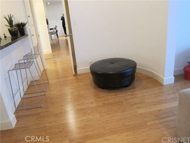 Come home to this lovely remodeled condominium! Feel immediately at peace in this charming and comfortable unit which is ideally located in an updated and recently renovated building in Westwood. Enjoy an end unit with no neighbors underneath, cork-lined bamboo floors for quiet. There is track lighting, an ample dining area, a breakfast bar, and a mosaic glass tile backsplash, granite counters and stainless steel appliances in the kitchen. Bathroom has been remodeled with a contemporary swinging glass door shower entry, tumbled stone floor. Unit has convenient access to the many amenities in the building. Building has 24-hour guard with cameras located throughout. Rec room for parties, conference room, media room, delightful water features, a sparkling pool, spa, sauna, laundry, koi ponds and a state=of-the-art gym, all beautifully maintained. Balcony overlooking pool and adjacent to beautiful flowering pear tree. Enjoy a delightful breeze from sliding glass door. Unit has cooling and a heating unit. Enjoy the luxury of 2 (Two!) assigned parking spaces in gated, secure garage. Lushly landscaped building is across the street from public tennis courts and park and there are lots of sidewalks. Walking distance to UCLA and to Westwood Village shops, restaurants and movie theaters. Conveniently located near freeway onramps and public transportation. Utilities included in the rent. Available to see. Available to lease July 1. A real find!