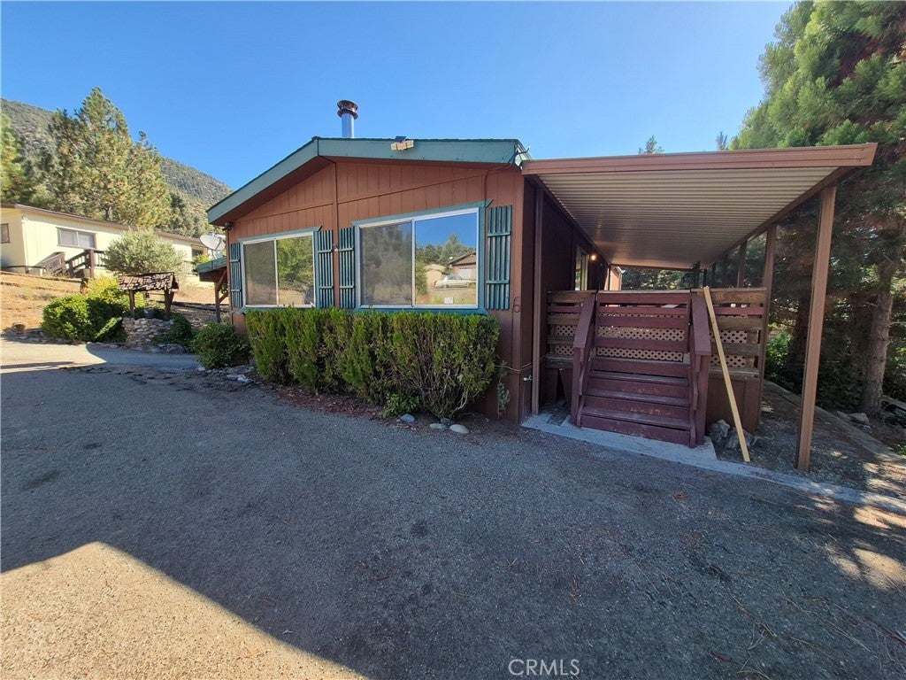 Charming 2-Bed, 2-Bath Single-Level Mountain Retreat with Deck, Carport, Wood-Burning Stove & Laundry Room. Tucked away on a peaceful, sunlit street in the heart of the mountains, this 2-bedroom, 2-bath manufactured home offers the perfect blend of quiet living and potential. Designed for easy, single-level living, the home features a bright layout with natural light throughout and a strong foundation for personalization. The spacious living room opens directly onto a private covered deck—ideal for relaxing outdoors or enjoying the fresh mountain air. Inside, you'll find an EPA-approved wood-burning stove for cozy evenings, and a dedicated laundry room with washer/dryer hookups for added convenience. A covered carport provides year-round shelter for your vehicle. Great location, walking distance to the village, club house, pool and tennis courts. Also walking distance to the school bus stop and equally close proximity to the horse stables and golf course. This quiet street offers easy access to beautiful hiking trails including the stunning Eagle Pass Ridge. The walls and ceilings have recently been repainted and the floors have been stripped, which means the buyer will have to install their own floors or carpet to their own tastes and specifications. This is reflected in the price and the house remains a great opportunity for those looking to customize their space or invest in a property with strong potential. A rare opportunity for a rare price!