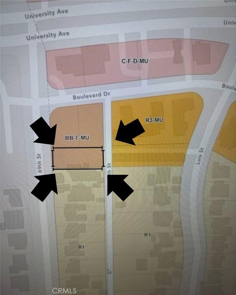 Prime Development Lot for Sale in La Mesa, CA. This 6,407 sqft lot is zoned for multiple units, residential, business or mixed use. Located off of University Avenue, it is bordered by 69th Street and Broadway, directly across the street from Joan Croc Community Center and the Rolando area. Ideal condition for developemnt. Electricity is off the back alley and sewer is in the center of 69th Street.