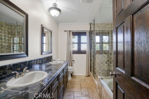 A rare and remarkable opportunity in West Hills—two fully independent homes on an expansive .79-acre lot, perfect for multi-generational living, rental income, or running a small business from home. The main residence features 5 bedrooms and 4 bathrooms, including a private 2-bedroom in-law suite with a kitchenette and separate entrance. Bathed in natural light with sweeping canyon and mountain views, this home offers open living spaces, spa-like bathrooms, and effortless indoor-outdoor flow. The detached upper home includes 3 bedrooms, 2 baths, a full kitchen, private patio, and separate driveway—ideal for extended family, guest quarters, or a business/studio setup. Enjoy a resort-style pool, spa, BBQ area, lush gardens, and a 3-car garage plus parking for 10+ vehicles. With nearly .8 acres of land, there’s room to add a sport court, orchard, or your own private retreat. This is more than a home—it’s a legacy property with unlimited potential.
