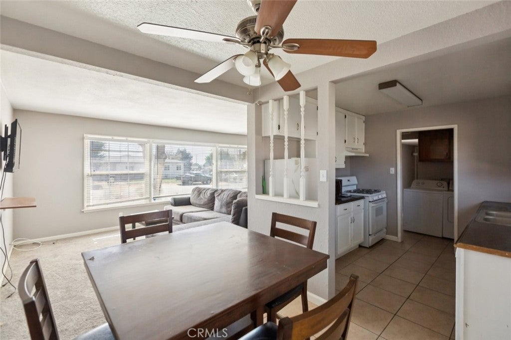 Now available in the heart of Mojave, this charming 3-bedroom, 1-bathroom single-story home offers 1,131 square feet of bright and functional living space. The spacious layout includes a generous living area filled with natural light from expansive windows, and a dedicated dining area that flows seamlessly into the kitchen. The kitchen features ample cabinetry, durable tile flooring, and direct access to a separate laundry area with washer and dryer included. Each bedroom is comfortably sized with closet storage, and the full bathroom includes a dual-sink vanity and classic finishes. Additional highlights include central heating and cooling, ceiling fans, and neutral paint throughout. Outside, enjoy a large front yard, a private driveway, and an attached one-car garage. With its blend of comfort, practicality, and location, this residence is an excellent option for those seeking long-term living or a smart investment opportunity in a peaceful residential neighborhood.
