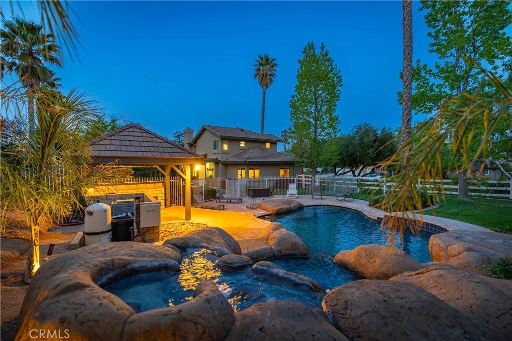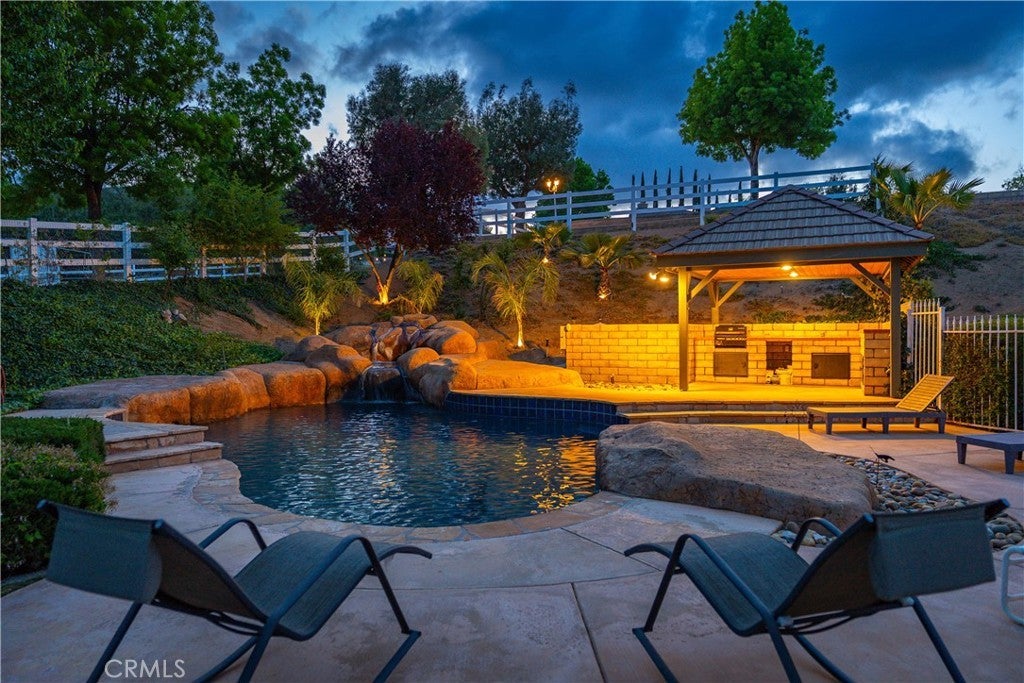 Breathtaking Estate in One of Acton’s Most Desirable Neighborhoods Welcome to your dream home where luxury meets country living! Located on paved roads with LA County water and natural gas, this stunning 1.02-acre corner lot is beautifully landscaped and thoughtfully divided into two 0.5-acre sections, easily cross-fenced. The turnkey 4-bedroom, 3-bathroom main house offers 2,891 sq ft with a 4-car attached garage, brand-new doors, side-mounted openers, and a Level 2 – 50-amp EV charger. Inside, enjoy fresh paint, updated flooring, modernized bathrooms, and Milgard double-pane custom windows with a lifetime warranty. The spacious family room features a gas fireplace and brick hearth, while the chef’s kitchen includes stainless appliances and granite countertops, flowing into a formal dining and living area with vaulted ceilings—perfect for entertaining. A downstairs bedroom and full bath offer direct access to your backyard oasis with a resurfaced pool and spa, tranquil water feature, new tile, app-controlled equipment, large cabana with built-in BBQ and outdoor fridge, plus a newly updated patio. Upstairs offers a versatile loft, two bedrooms with an updated bath, and a master suite retreat with a custom walk-in closet, spa-style bath with garden tub, walk-in shower, and dual vanities. Custom bamboo hardwood floors enhance the living areas, with plush carpet in all bedrooms. A separate gated driveway leads to a permitted 3-car detached garage with epoxy flooring, bathroom, and a fully equipped bar—soundproofed and perfect for entertaining or a music studio. Extras include a 50-amp outlet inside, RV hookup with sewer, fully owned 27-panel solar system, room for a barn or arena, mature trees, uplighting, and Wi-Fi irrigation. This equestrian-friendly neighborhood is your chance to enjoy country luxury without sacrificing convenience—no dirt roads, just comfort, privacy, and room to breathe!