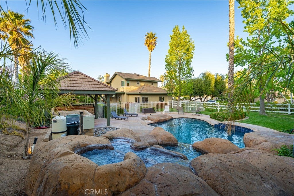 Breathtaking Home, 1.02 Acre, Luxury Living in Acton, CA! Prepare to be wowed by this stunning, turnkey 4 Bed 3 Bath home with incredible amenities, in one of Acton’s most desirable communities. The impeccable upkeep and dazzling curb appeal is accentuated by beautiful brickwork & 4 car attached garage w/exquisite new door, side-mounted openers, and a Level 2 (50-amp) EV charger. Now, the marriage of Luxury and Acton Country Life begins. Interior upgrades include fresh paint, updated flooring, remodeled bathrooms, and Milgard custom double-pane windows with lifetime warranty. With a formal entry boasting vaulted ceilings and sightlines to the amazing floorplan the charm of this home is apparent. To the left of the entryway, you will find the formal dining space and sitting area, with great natural light and direct access to the large kitchen. The Chef’s kitchen boasts granite countertops, recessed lighting, beautiful cabinetry, breakfast bar and sightlines to the family room. The family room features a gas fireplace w/stately brick hearth, wet bar. From here, the downstairs bed and bath, with convenient access to the backyard and pool. Upstairs, the massive primary suite offers custom closets, large bath w/dual vanities, walk-in shower and garden tub. Next, the large loft area that offers great versatility. Rounding out the upstairs are the remaining 2 bedrooms & bath. Now, the outdoor entertaining space of your dreams! The updated patio, meticulous landscaping and luxurious surroundings with a pathway to the custom pool and spa with a tranquil fountain feature and BBQ/kitchen area. This is destined to be the hangout spot for all of your summer fun! Heading up the slope to the top of the property, either by steps or the separate gated driveway, is a permitted 3-car detached garage with epoxy floors, bathroom, and soundproofed bar, ideal for entertaining or studio use. Additional features include RV hookup w/sewer, 50-amp interior outlet, owned 27-panel solar system, Wi-Fi irrigation, mature trees and room for a barn or arena. Enjoy country living with modern convenience—no dirt roads, privacy and space to breathe. This house truly has it all…warm aesthetics, high end finishes, a great floorplan, entertainment options at every turn.