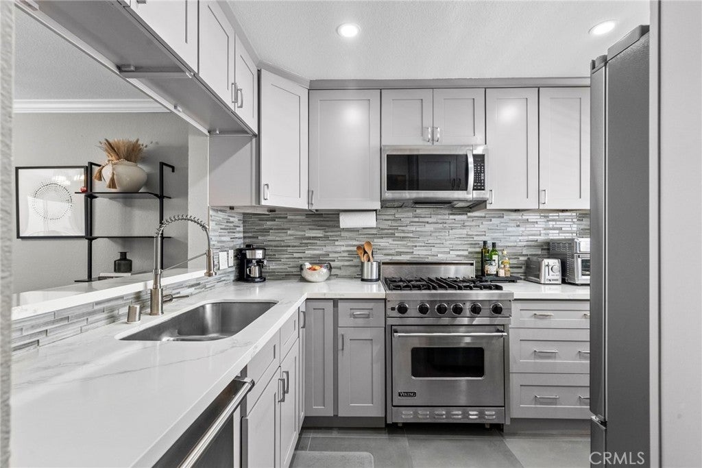 Welcome to 5230 Zelzah Ave. #3, a beautifully updated condo nestled in the heart of Encino. This spacious 2-bedroom, 2.5-bathroom home boasts 1,228 square feet of thoughtfully designed living space, blending contemporary elegance with everyday comfort. This home has been thoughtfully updated throughout with luxury plank vinyl flooring, crown molding and contemporary ceiling fans in the living room and each bedroom. Step into the modern kitchen, where sleek quartz countertops and top-of-the-line Wolf stainless steel appliances make both cooking and entertaining a breeze. The open floor plan flows effortlessly into the living and dining areas, perfect for hosting friends or enjoying a quiet evening in. Located in a gated community of just 14 residences, each unit enjoys the rare convenience of a private 2-car garage with in-unit laundry. The grounds are impeccably maintained and includes a sparkling pool & BBQ area. This home offers a sense of serenity while keeping you just a short stroll from the lively shops and dining on Ventura Boulevard. This is more than just a home—it’s a lifestyle.