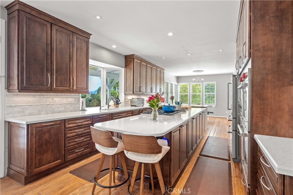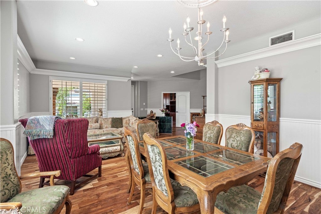 Seller will consider all reasonable offers!!! NO MELLO ROOS LOW HOA!! Welcome to your dream oasis! Nestled in an idyllic neighborhood, this extraordinary house is not just a home—it's a lifestyle. With a wealth of upgrades and a flexible floorplan, this property offers everything you need and more.Step inside and be captivated by the beautifully remodeled kitchen, a chef's paradise, featuring floor-to-ceiling cabinetry with soft-close pull-out drawers, a mixer lift shelf, an expansive 18-foot island, quartz counters, marble backsplash, and a Butler’s pantry making it both functional and stylish.Unleash your culinary creativity with top-of-the-line appliances, including a Wolfe double oven.The charming bay window invites natural light and warmth, making this space perfect for entertaining.This home offers an abundance of rooms and bathrooms, ensuring versatility for your lifestyle needs. The main level features two rooms and a full bath, one room as an office with built-in's-perfect for remote work and one as a bedroom. Entertain friends and family in the elegant formal dining room or cozy up in the inviting family room with a charming fireplace.Venture upstairs to the luxurious primary bedroom with it’s own retreat- ideal for a reading nook or nursery, PLUS a loft off the closet -perfect for a library or personal gym. Step out onto the massive balcony, where you can soak in the breathtaking 180-degree views. Three additional inviting bedrooms await, with one boasting a private bath and the others sharing a convenient walk-through bathroom. Enjoy the details that make this house a home—from the newly painted interiors and exteriors to custom built-ins in every bedroom, providing storage solutions that maximize space. The 2 upgraded Dual Lennox air conditioning units with a 3 zone system ensure year-round comfort, while the shutters, wainscoting, and crown molding adds a touch of elegance throughout. Situated on a desirable corner lot, this property features a beautifully landscaped yard and backyard oasis complete with a massive patio cover—perfect for outdoor gatherings or tranquil evenings under the stars. With no side neighbors and convenient access to the community pool, spa, and playground, this location is ideal! With award-winning schools and close proximity to shopping centers and freeway, this home combines comfort, convenience, and community in one remarkable package. Don’t miss your chance to own this stunning property! Schedule a showing today!