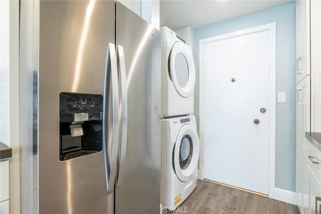 Luxurious and spacious corner condo unit featuring 2 beds, 2 bath, and 2 parkings spaces. Rich natural light throughout the whole house. Double door front entry, high celling, beautiful wood flooring leads to a spacious and-multi function, open concept living area. Master bed features double sink, vanity table, soaking bath tub, separate glass shower, and walk in closet with built-in shelves. Updated 2nd bath with shower. Large 2nd bedroom next to the hidden wet bar with natural light. Kitchen features all electric, gourmet-style dark counter tops with plenty of cabinets. Indoor laundry. 2 parking spaces - one in the garage and one in the back of the building for easy access. Beverly Hills unified school district. Conveniently located in Beverly Hills near all shopping, restaurants and spas, grocery stores, UCLA, Cedars Sinai, Century City, and Rodeo drive.