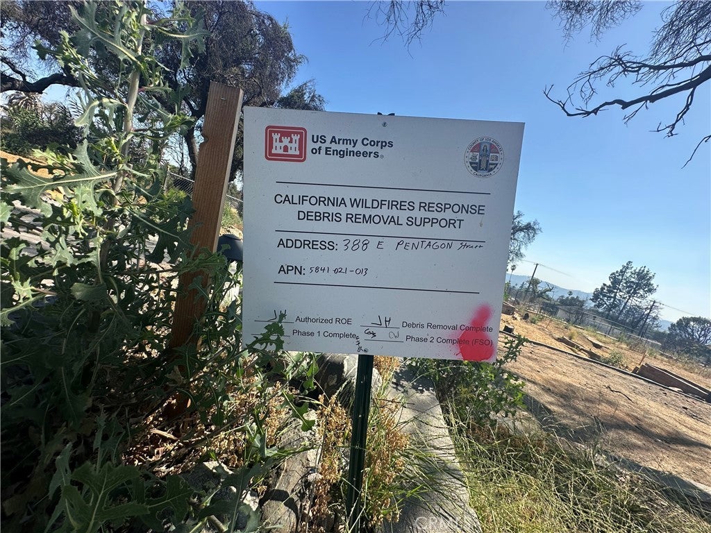 388 E Pentagon: Once home to a cozy 2-bedroom, 2-bath residence just shy of 1,000 sq ft, this approximately 6,500 sq ft lot now awaits its next chapter. You will find this gem tucked away at the end of a peaceful private street. Sold as land only, this lot offers serenity and privacy in Altadena with mountain views, while also offering quick access to the Altadena Library, Christmas Tree Lane, Mariposa Village, and The Lincoln Corridor. It’s also just minutes away from Pasadena. The site has completed both Phase 1 and Phase 2 debris removal by the Army Corps of Engineers, providing an opportunity for new beginnings. Take full advantage of existing fire rebuild rights and fast-track ADU opportunities—ideal for building a custom home for multi-generational living or income potential. This is more than an empty lot. It’s an invitation to shape the future of a beloved community, and to create your personal oasis in the foothills of Beautiful Altadena.