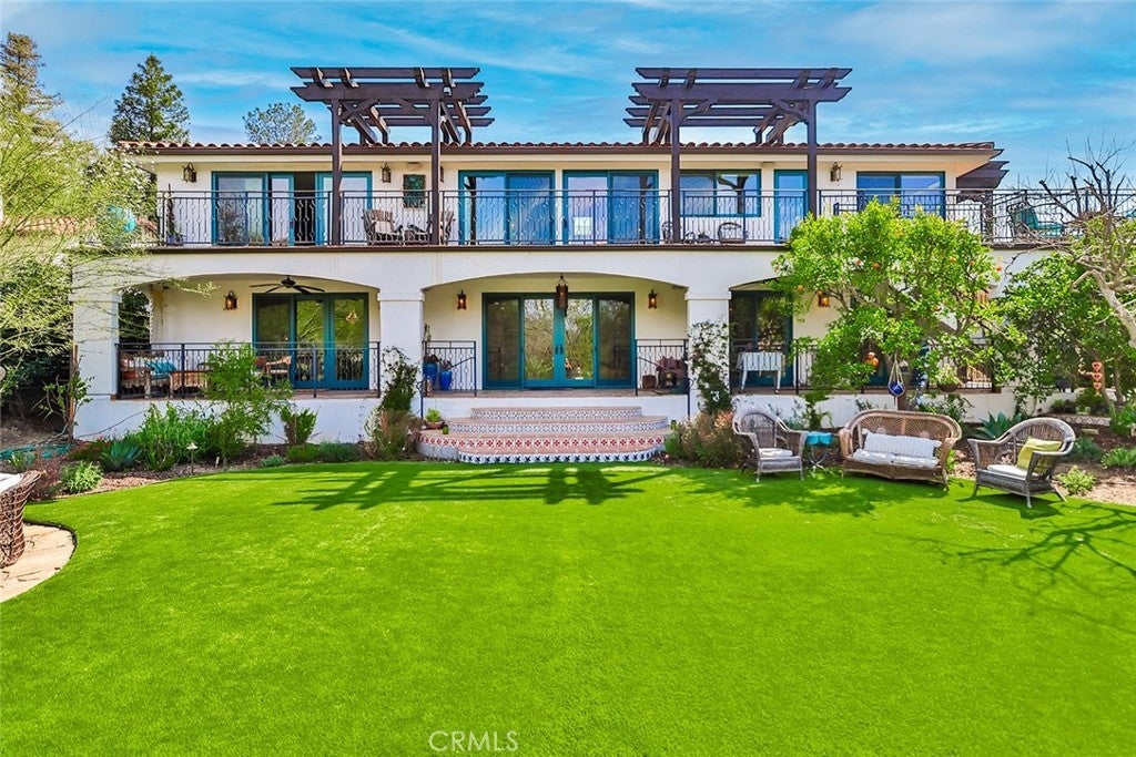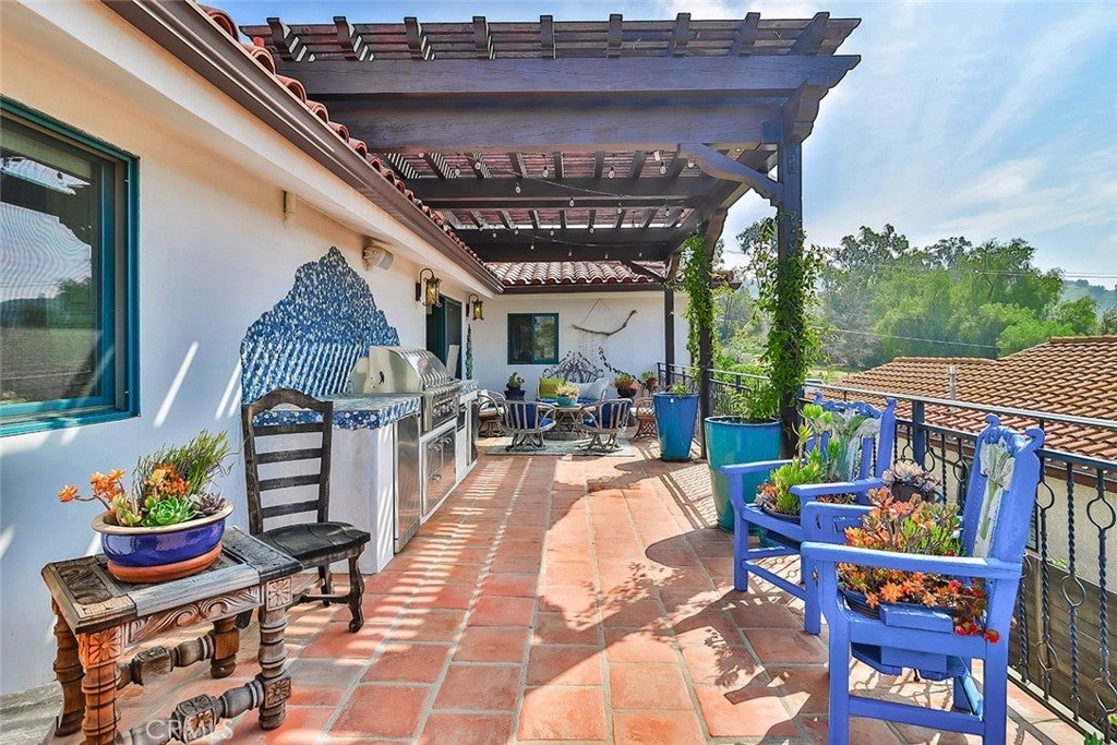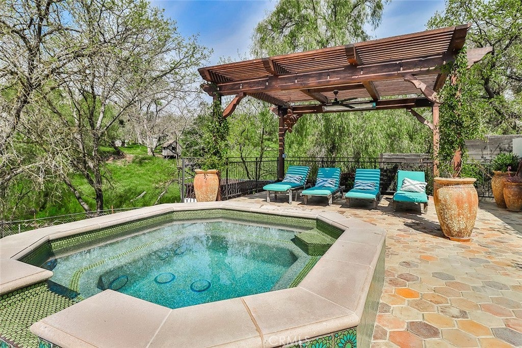 Introducing an exquisite Spanish-style villa nestled on a serene half-acre parcel within a prestigious horse community. Surrounded by lush greenery and majestic oaks, this property promises an unparalleled private retreat. Step through the gated entrance and be greeted by a mesmerizing fountain and meticulously designed outdoor lighting. This distinguished residence boasts six expansive bedrooms, three of which feature luxurious en suite bathrooms. The fully equipped kitchen is a chef's dream, while the inviting living room provides the perfect space to unwind. Adding to the allure, a charming guesthouse awaits, offering one cozy bedroom, a bathroom, and a convenient kitchenette, ideal for accommodating visitors in style and comfort. Outdoors, discover a haven of relaxation and entertainment, complete with a covered pergola adorned with grapevines, ideal for al fresco dining. Fire pits and a barbecue area set the stage for outdoor gatherings, while the Jacuzzi, surrounded by lush fruit trees, offers a tranquil retreat. The pièce de résistance of this remarkable property is the breathtaking infinity pool and spillway, providing stunning views of the vineyard and surrounding landscape. With its luxurious amenities and captivating surroundings, this Spanish-style villa presents an unparalleled opportunity for discerning buyers seeking elegance, tranquility, and timeless beauty. Don't miss your chance to experience the magic of this extraordinary retreat.