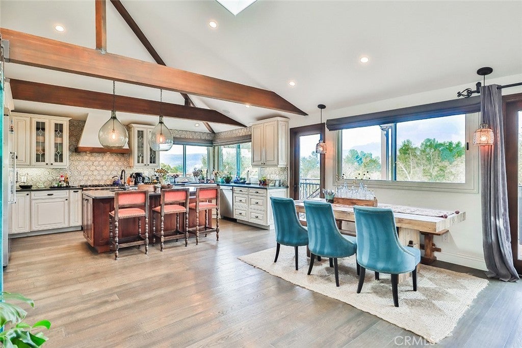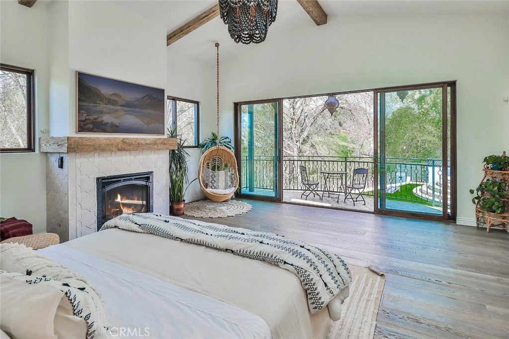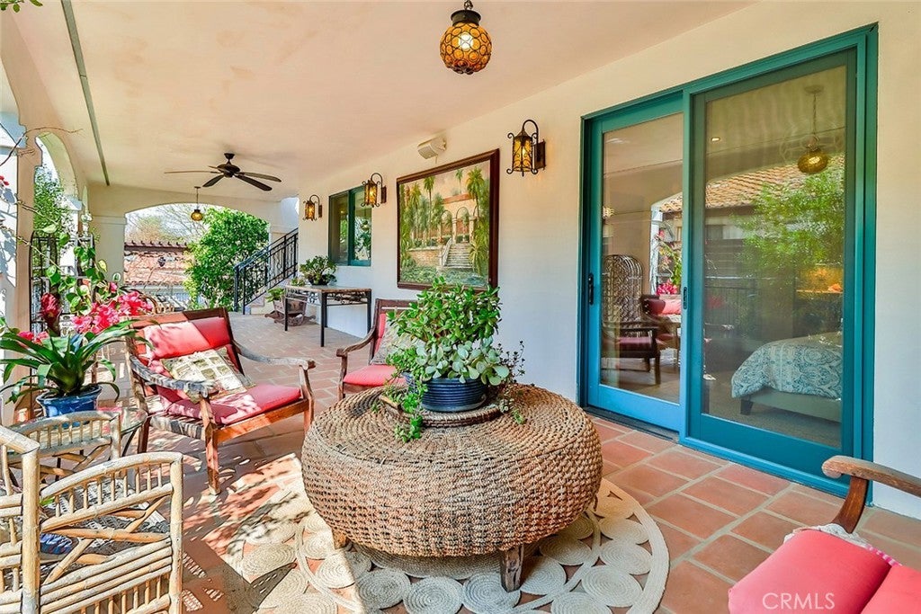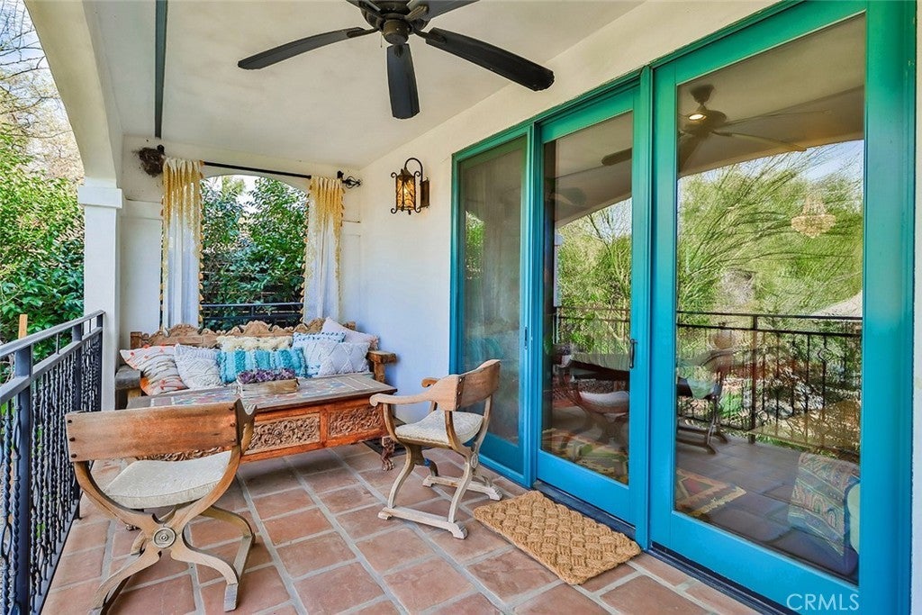 Beamed Ceilings, Balcony, Breakfast Area, Ceiling Fan(s), Separate/Formal Dining Room, Eat-in Kitchen, Furnished, High Ceilings, Living Room Deck Attached, Open Floorplan, Pantry, Stone Counters, Recessed Lighting, Wired for Sound, Bedroom on Main Level, Main Level Primary, Multiple Primary Suites, Primary Suite, Walk-In Pantry, Walk-In Closet(s)