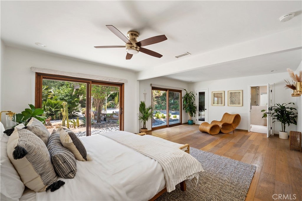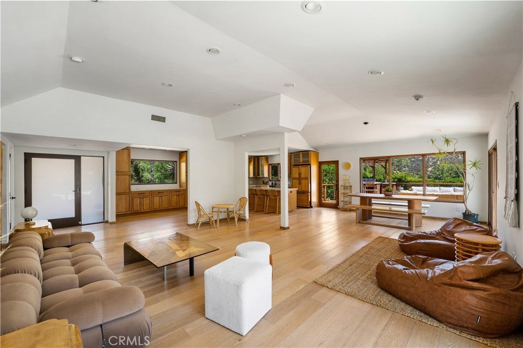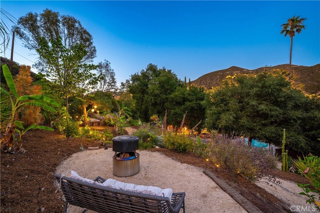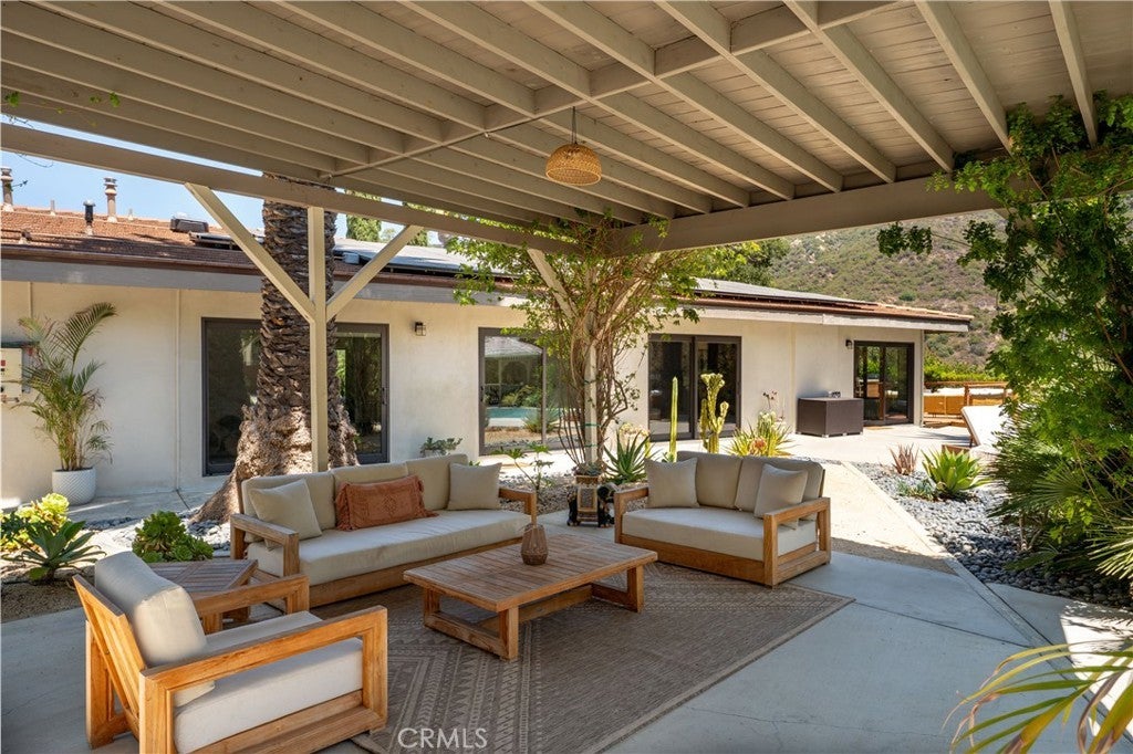 Discover a one of a kind creative sanctuary in the serene Calabasas Mountains offering a rare blend of privacy, versatility, and soulful living. This retreat features a beautifully updated four bedroom, three bath main residence complemented by a detached ADU perfect for guests, extended family, rental income, or a home studio. Inside, the open concept floor plan is filled with natural light and designed for seamless indoor outdoor living, creating an ideal environment for family gatherings, entertaining, or quiet relaxation. Step outside to enjoy a sparkling saltwater pool, cold plunge, and mineral rich swim spa, all surrounded by lush landscaping and mountain views. Over the past two years, the entire property has been thoughtfully transformed with thousands of plants into enchanting meditation gardens, meandering fruit tree paths, and a natural amphitheater designed for family events and community gatherings. Additional amenities include a detached ADU with a full kitchen and bath offering flexible space for guests or income potential, a dedicated yoga studio for personal practice or private sessions, an inspiring art studio ideal for painting, sculpture, or creative workshops, and a professional recording studio with a sound booth designed for musicians and creators. These carefully curated spaces provide opportunities for wellness, artistic expression, and connection, making this home perfect for families seeking a lifestyle that supports creativity and everyday living. Whether you envision hosting gatherings, running wellness retreats, or simply enjoying a peaceful lifestyle with proximity to Malibu beaches and Los Angeles, this property offers a rare opportunity to live, create, and thrive in a setting that feels like a private retreat while staying connected to city conveniences.