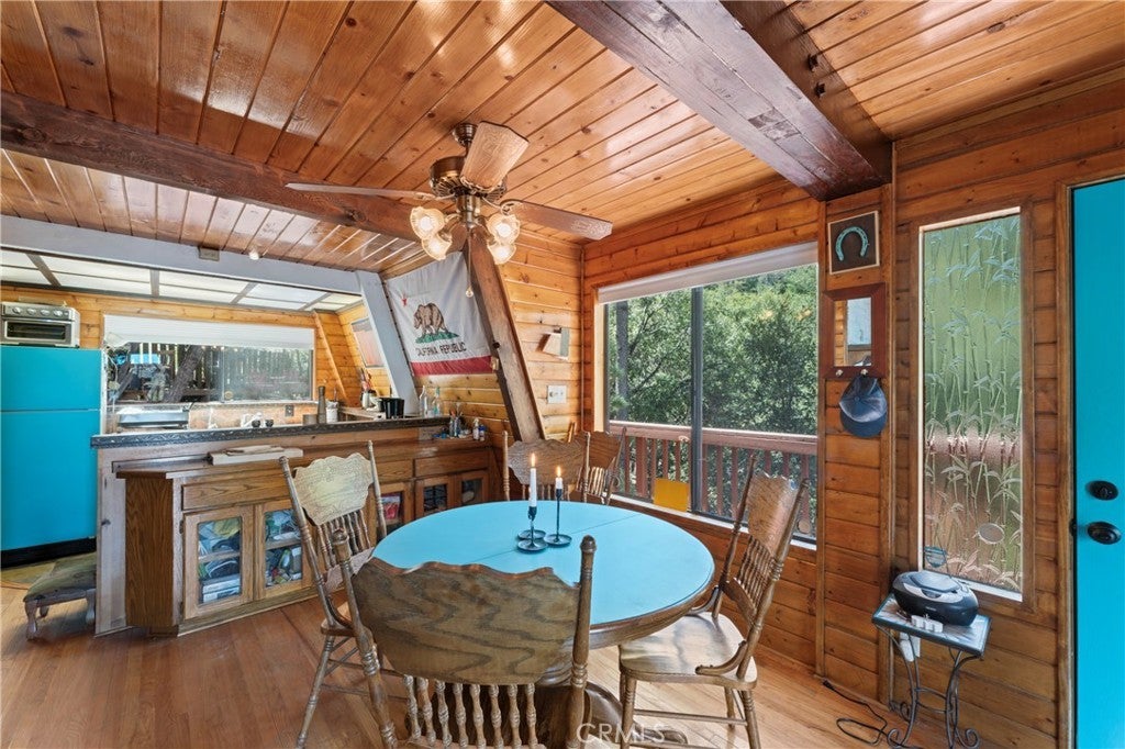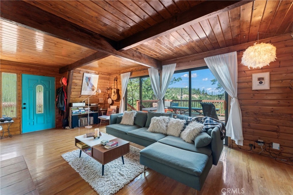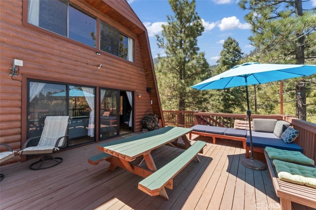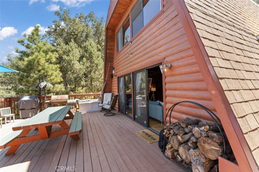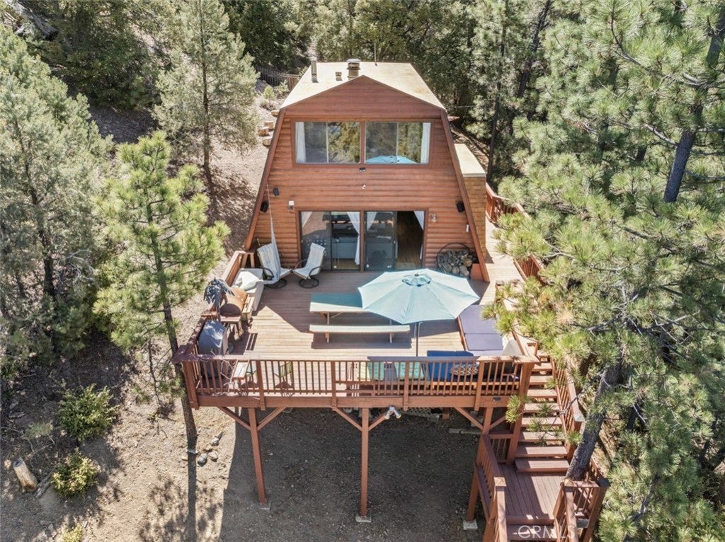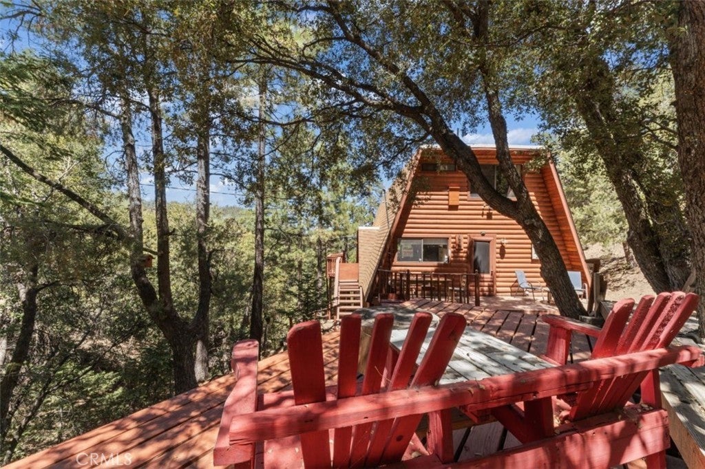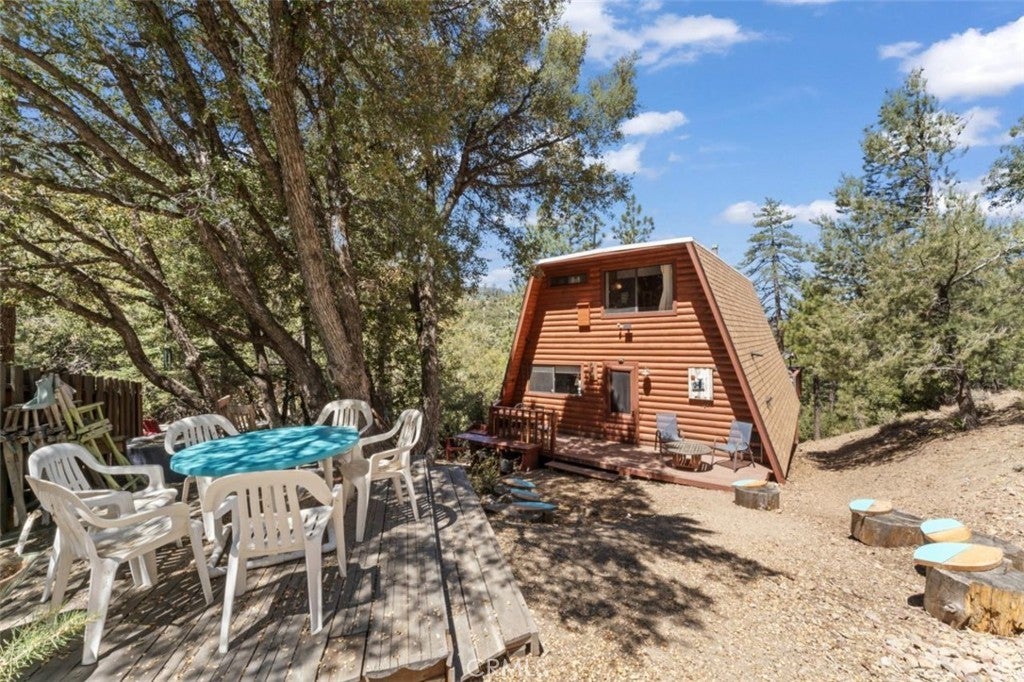 Nestled on a scenic hillside, this log-sided home blends mountain charm with modern comfort. The expansive front deck offers an inviting space for gatherings, while several private seating areas behind the home provide peaceful spots to unwind and enjoy the natural surroundings. A spacious two-car garage with an attached workshop and a paved driveway offer ample parking and room for projects. Inside, the upper level includes two generous bedrooms and a full bath. The main floor features a cozy living room, a welcoming dining area, a well-appointed kitchen, and a convenient three-quarter bath. With its warm character, functional design, and stylish details, this mountain retreat offers both comfort and versatility. The sale also includes a half interest in the adjoining parcel, adding extra value and potential.
