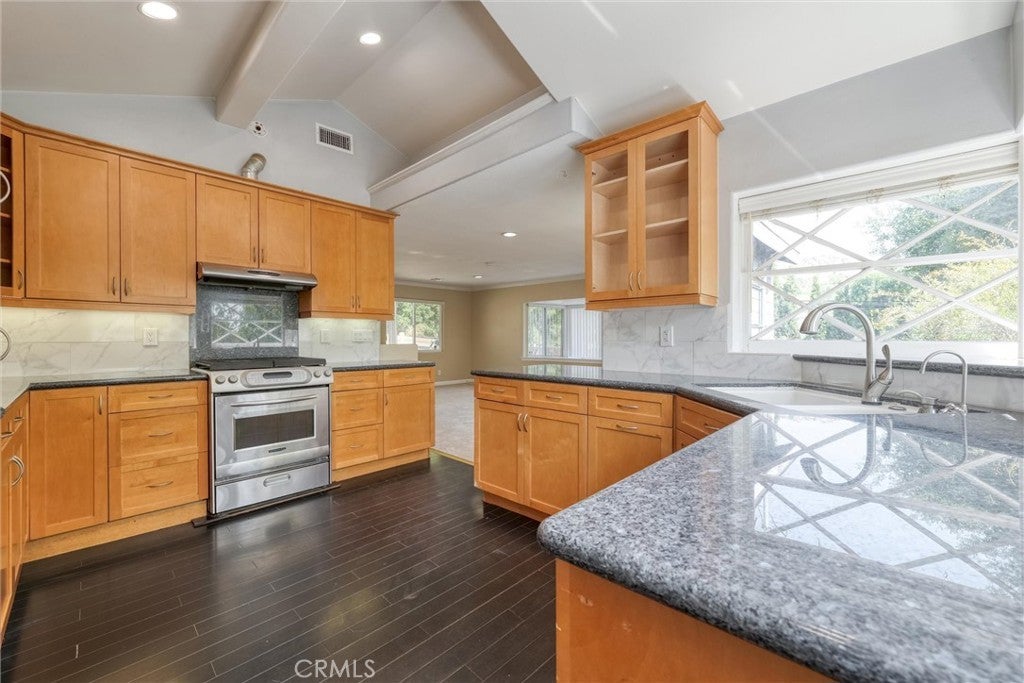 Welcome to this unique, one of a kind, charming house, nestled on the west side of the tranquil 1,325-acre Chatsworth Nature Preserve. This countryside feeling home has 3 bedrooms, all with vaulted beam ceilings and 1 bathroom. The spacious kitchen is full of natural light also with vaulted ceiling and sparkling granite counter tops. The house features a newer roof, AC system and electrical panel upgrade. Enjoy cozying up to wood/gas fireplace in living room. Off the back patio is a detached laundry room and a double door multi-purpose room for storage, a studio, or other creative use; both have AC window units. A fenced backyard offers the perfect place for entertaining and room for pets. The back 1/3 of the lot is level, just right for an ADU or RV parking, with low-maintenance landscaping. This retreat is conveniently located near parks, hiking and horseback riding trails, schools and shopping.