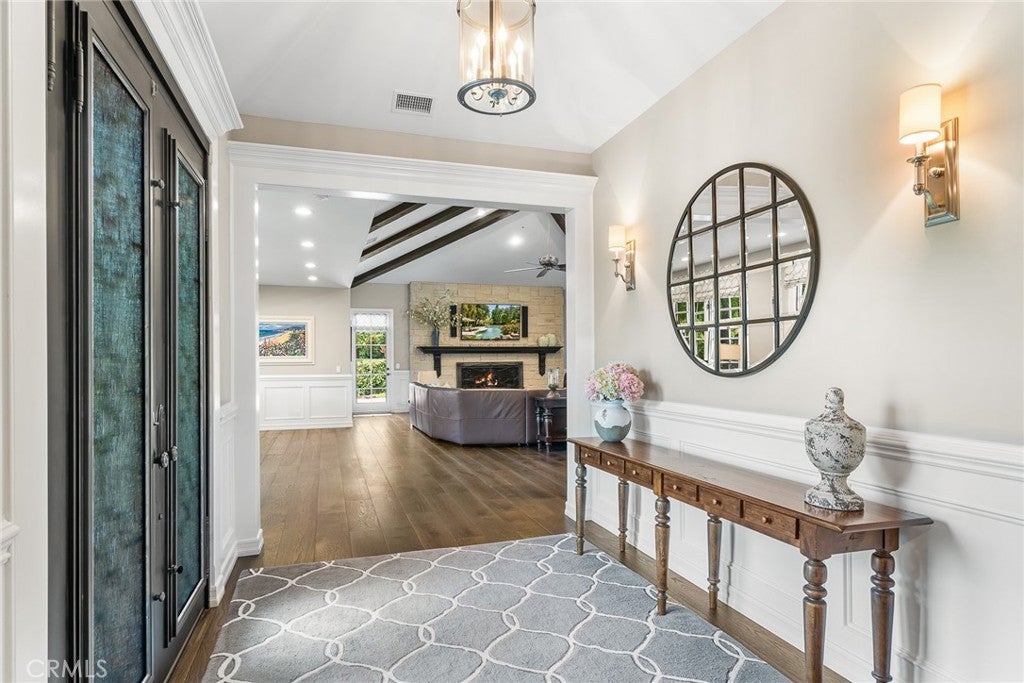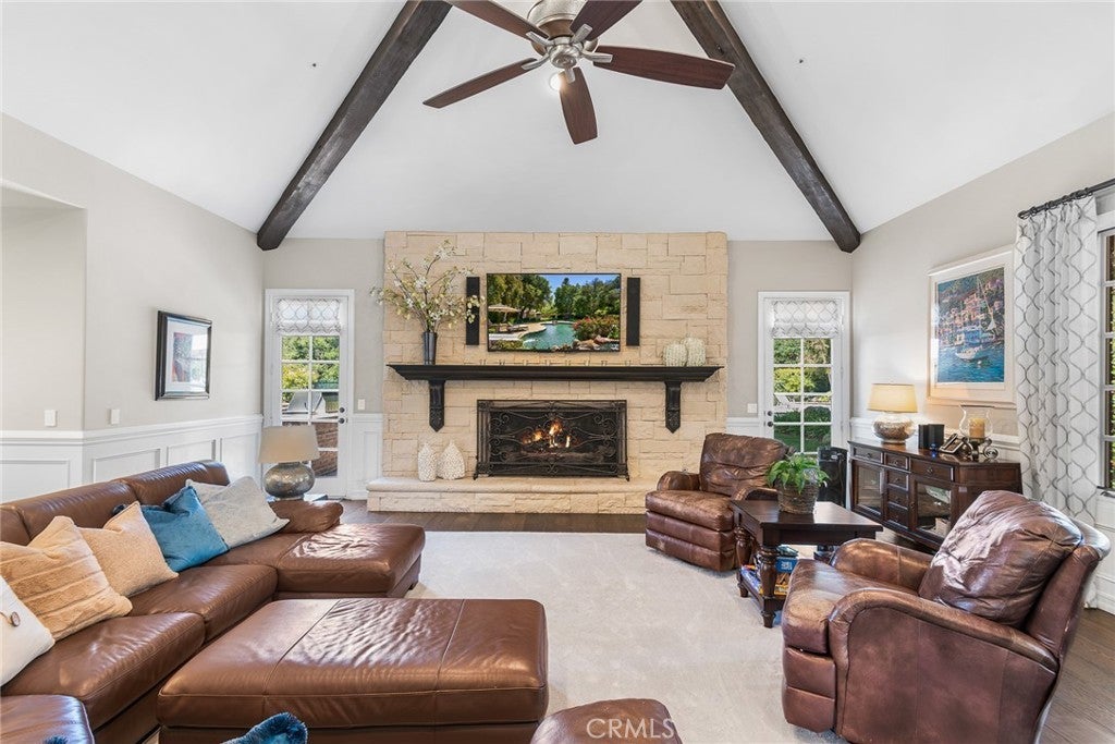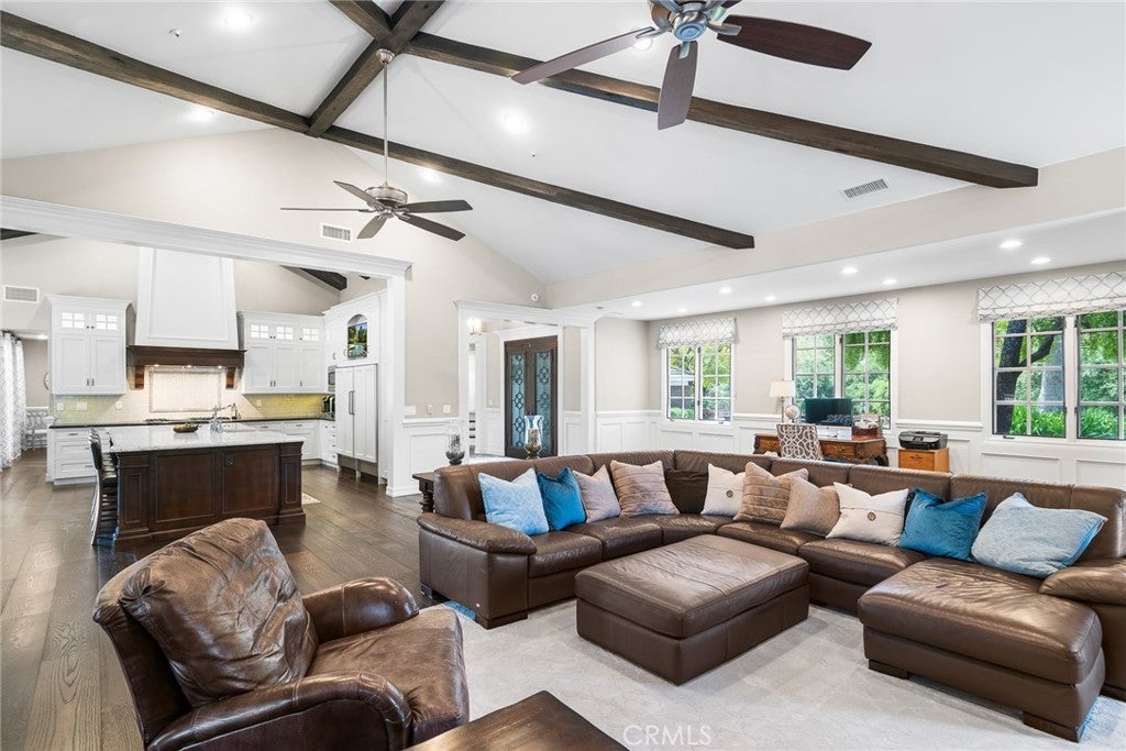 Welcome to 5135 Island Forest Place — a private sanctuary gracefully positioned along the serene sixth fairway of the esteemed North Ranch Country Club. This contemporary estate is a testament to architectural elegance and thoughtful design, encompassing over 5,100 square feet of living space. With five generously appointed bedrooms and five bathrooms, the home offers abundant room for both grand entertaining and quiet retreat. Two main-level bedrooms feature ensuite baths, affording exceptional privacy and comfort for family members or discerning guests. Set on over 260 feet of prime golf course frontage, the residence enjoys uninterrupted views of rolling fairways framed by mature oaks providing both visual splendor and a natural sense of seclusion. The expansive great room, crowned by soaring 16-foot ceilings, floods with natural light and offers an ideal setting for sophisticated gatherings, fireside reading, or peaceful reflection. Step outside to a resort-inspired backyard, where a shimmering pool and spa are embraced by lush landscaping, creating an intimate outdoor haven. Whether entertaining under the stars or savoring a quiet morning by the water, this space is designed to restore and inspire. Located on a tranquil cul-de-sac within the exclusive gated enclave of Island Forest—comprised of just 14 distinguished residences—this home offers the rare combination of security, privacy, and community. Low HOA dues add to the appeal of this elite setting. Enhancing the property’s value and lifestyle offering, a significant renovation of the North Ranch Country Club’s renowned golf courses is currently underway, promising an elevated playing experience and world-class amenities upon completion. Unlike other homes in the area, 5135 Island Forest Place is thoughtfully situated away from through-traffic, ensuring a sense of peace that is both rare and cherished, truly evoking the feel of a personal island retreat. Here, luxury meets tranquility in one of North Ranch’s most coveted addresses.