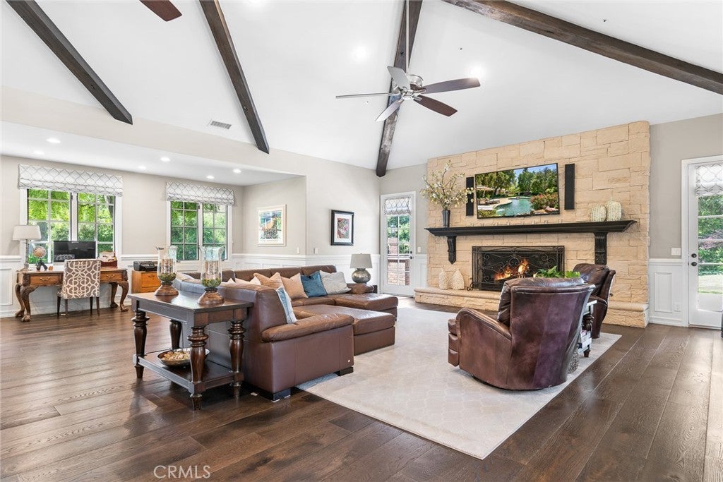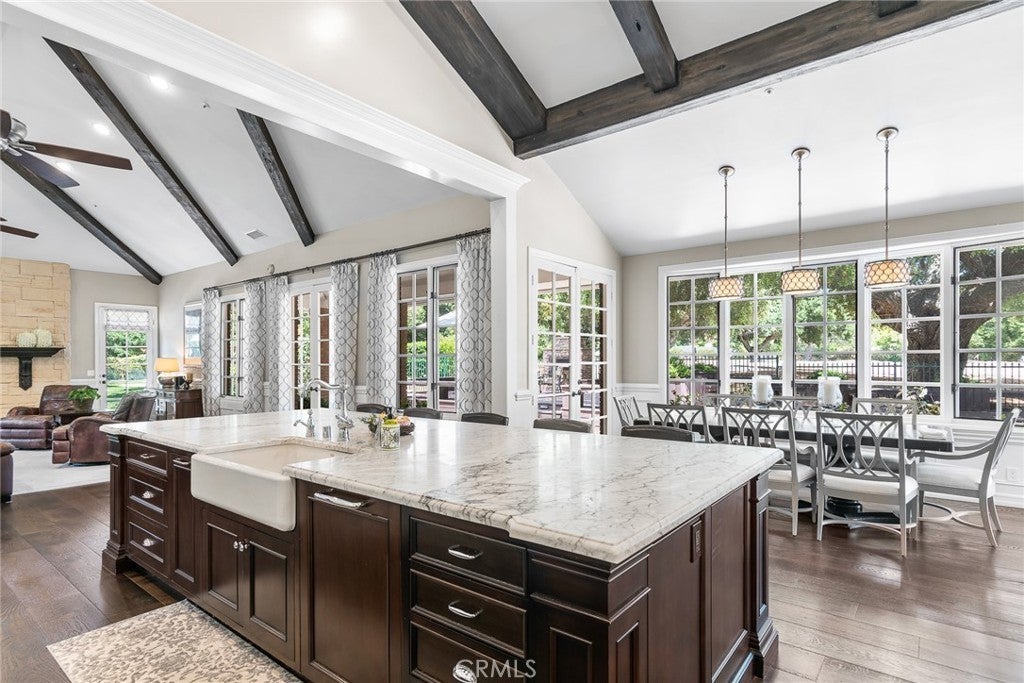 Beamed Ceilings, Built-in Features, Balcony, Breakfast Area, Ceiling Fan(s), Separate/Formal Dining Room, Eat-in Kitchen, Granite Counters, High Ceilings, Primary Suite, Crown Molding, Paneling/Wainscoting, Recessed Lighting