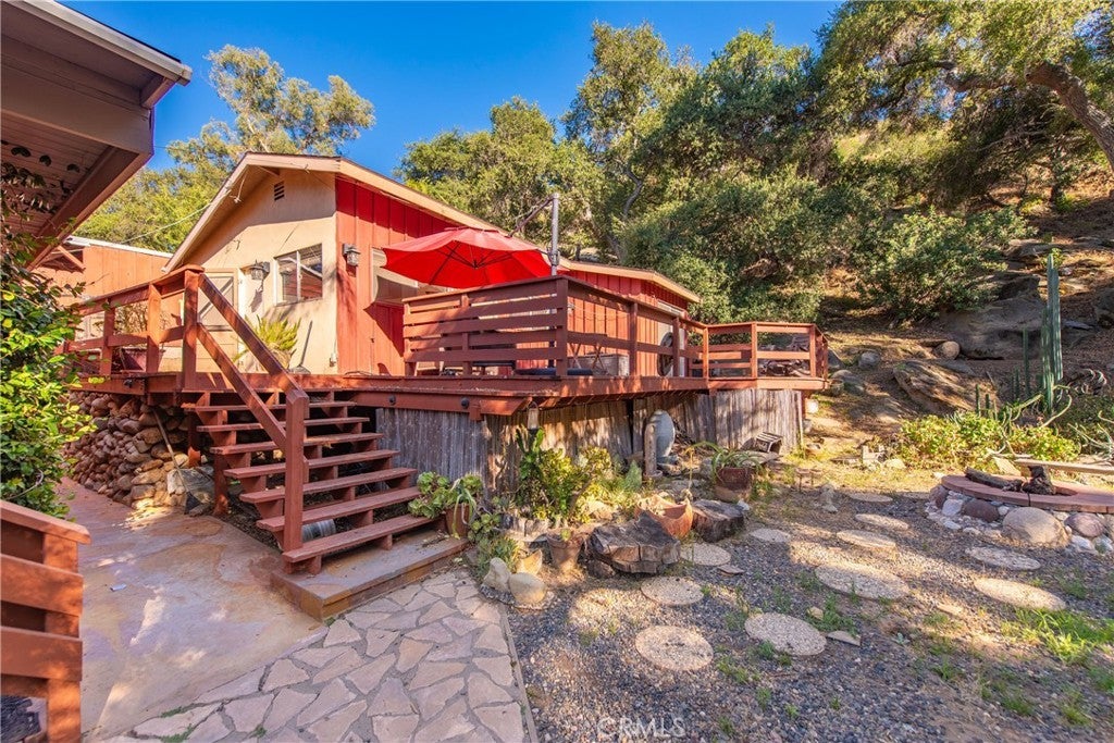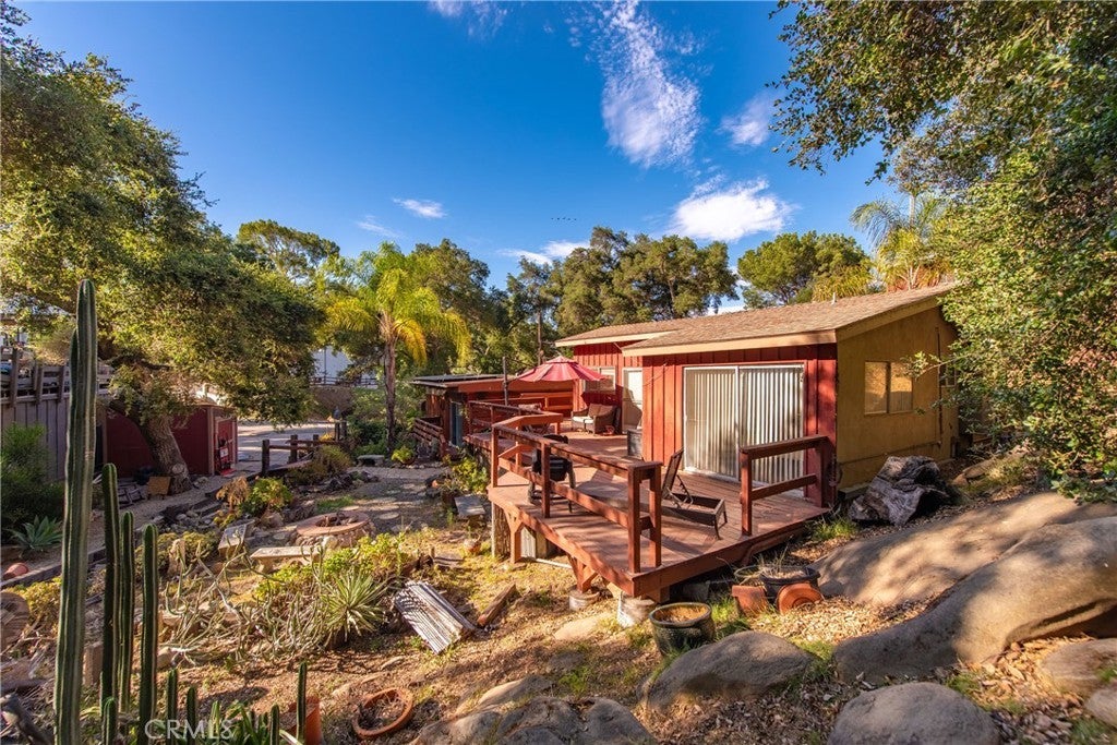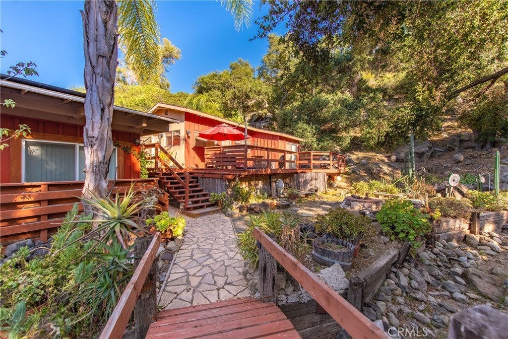 Large price reduction on this one of a kind home with ADU! Just minutes away from shopping and the valley. Yet you'll feel like you have been transported many miles away to a beautiful country setting. Built at the base of a mountain, with big boulders, a canopy of oak trees, and a natural waterfall with a creek that runs right through the property. The main house is a cozy two bedroom one bathroom that needs work in the kitchen. The detached ADU is a one bedroom, one bathroom with granite counter tops, and a marble shower. The front room has beamed ceilings with skylight and their is granite countertop in the kitchen. Both units have separate heating and air. The home comes with electric solar panels that are currently leased, and will be paid off pryor closing.