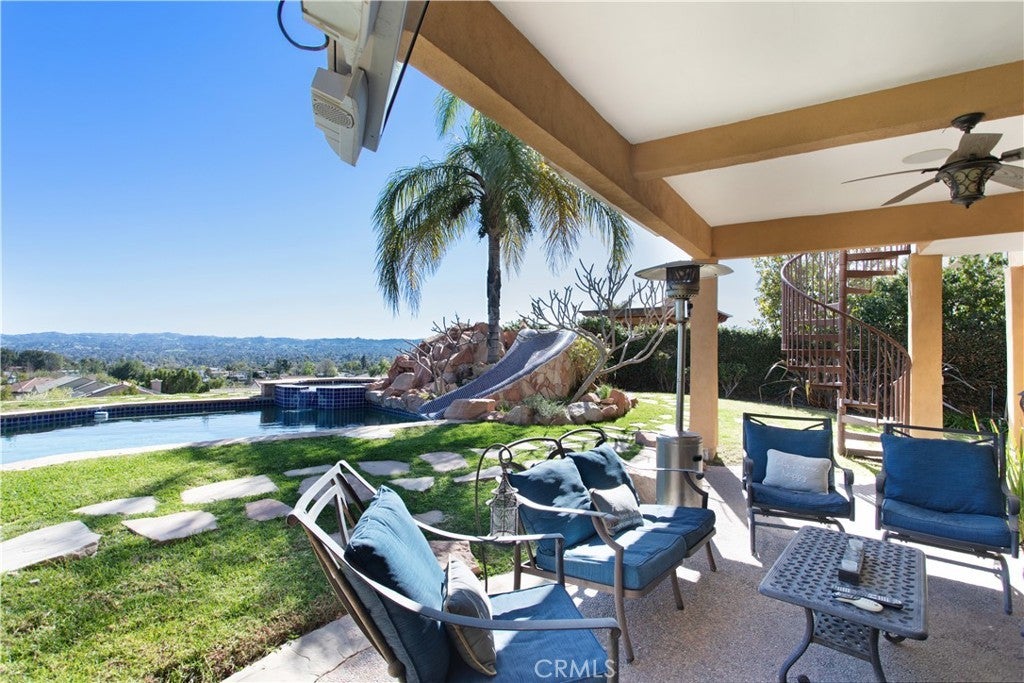 View Home is the Hills of Monte Vista community. Upon Entering you are welcomed by soaring ceilings of the foyer and an open sunny formal living room with cozy fireplace, as well as elegant formal dining room with a view. The remodeled kitchen is a perfect for daily cooking and entertaining. Includes breakfast bar and eating nook overlooking the back yard and pool. There's a full bedroom downstairs, full bathroom, plus 1/2 bath, and family room with fireplace. This home has a beautiful primary bedroom with walk in closet and spa like shower and soaking tub. Huge veranda off the master suite with a spiral staircase to go down to the pool and jacuzzi. There is an outdoor bar and kitchen area as well. Laundry room is located downstairs adjacent to 3 car garage with loads of storage. Located in the award winning El Camino High School, Hale Middle school & Pamelo Elementary school. Close to shopping, dining and entertainment at malls such as The Village Topanga Westfield Shopping Mall, Calabasas commons, hiking trails, and award winning schools, includes private security patrol. Home as expansive views all the way to Burbank. No back neighbors to obstruct the view. Close commute to The valley, and Ventura country. only 20 minutes to the beach. This home offers a quiet location on the cul de sac in a very private community.