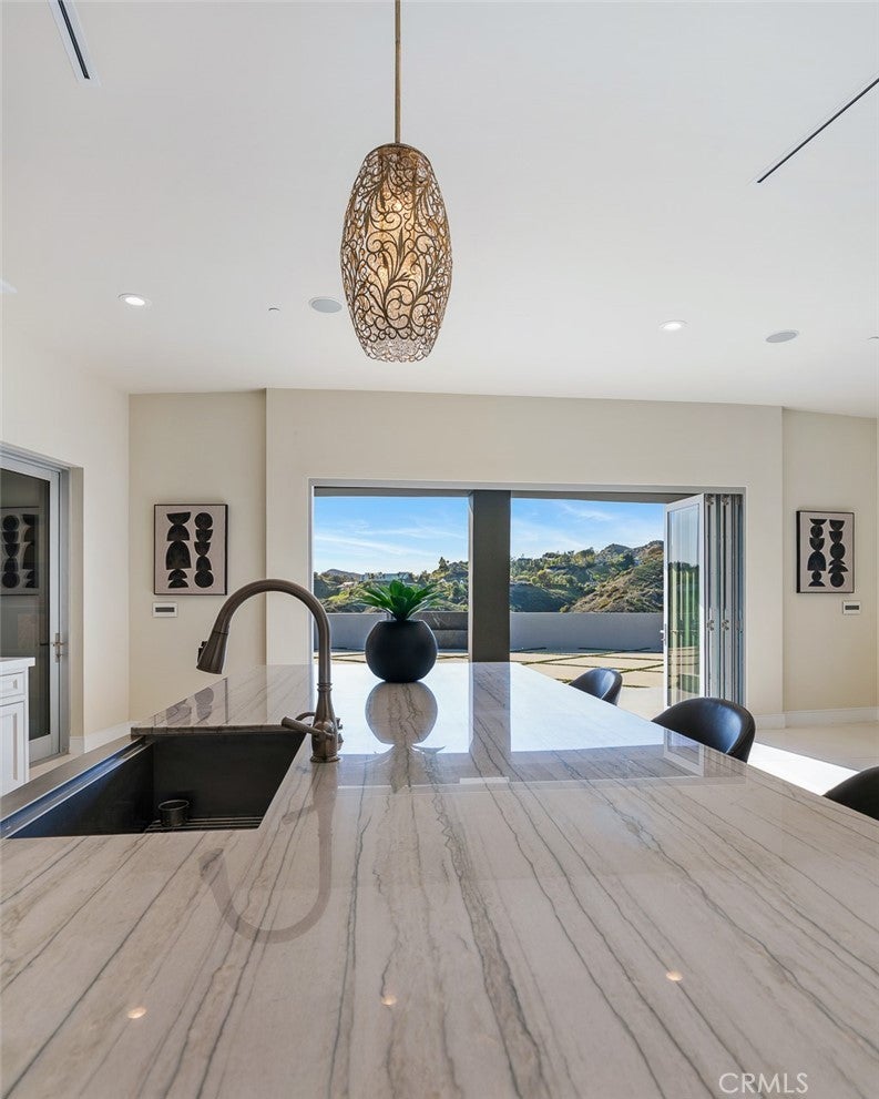 Breakfast Bar, Built-in Features, Crown Molding, Separate/Formal Dining Room, Living Room Deck Attached, Open Floorplan, Pantry, Quartz Counters, Recessed Lighting, Storage, Wired for Data, Bar, Walk-In Pantry, Walk-In Closet(s), Intercom, Stone Counters, Wet Bar, Wired for Sound