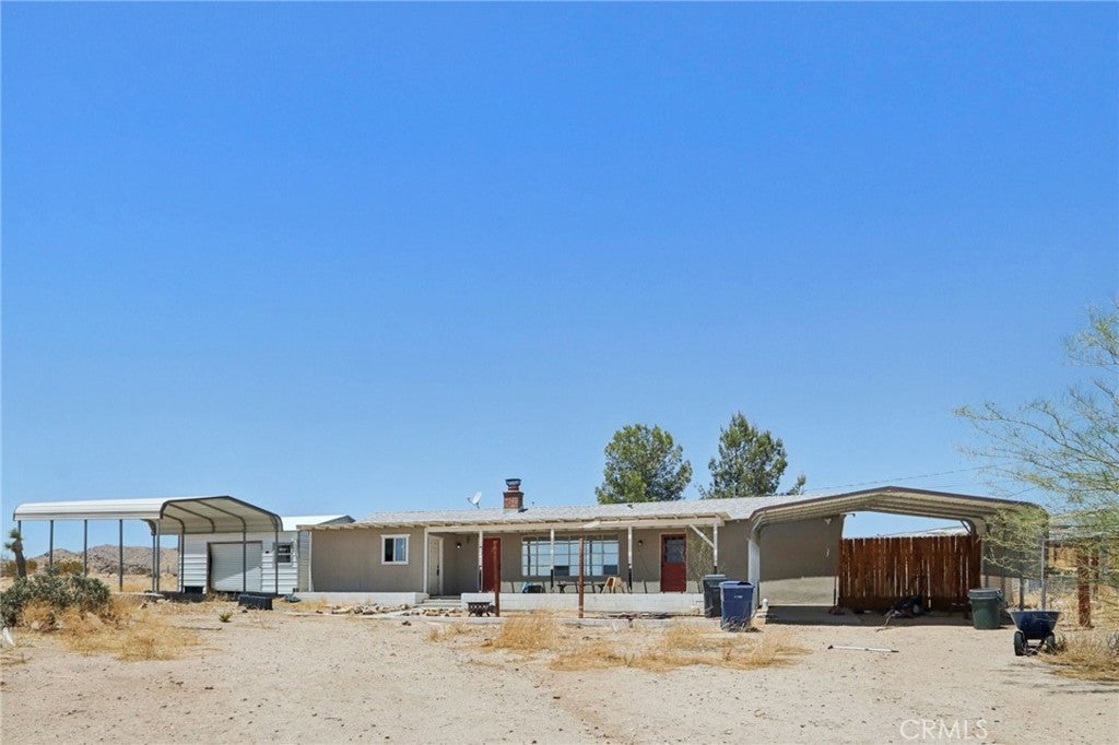 Located on a 5-acre parcel with approximately 1.2 acres fenced, this view property offers privacy, space, and functionality. The home features stainless steel appliances, an electric stove, and an electric water heater. The spacious living room includes a brick fireplace. There are two bedrooms and one full bathroom. Exterior features include two carports, a detached garage with electrical on a concrete pad, multiple storage sheds, and drought-tolerant natural landscaping. Ideal for buyers seeking land, views, and versatile outdoor structures!