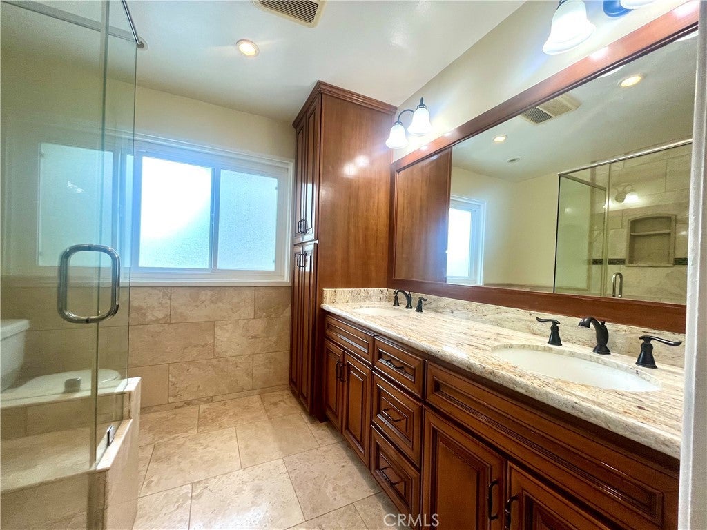Open House Monday 22nd 1:30-3:00 Come see this newly painted, beautiful South of the Blvd. Woodland Hills home in award winning school district. This lovely 4 bedroom, 3 bath home with breathtaking upstairs bedroom views is waiting for you. This family home is set above the street and welcomes you with a charming putting green and fountain in the front of the house and an inviting front-entry with designer stone and oak front doors. Enter from the foyer into the mirrored formal Living Room with a cozy fireplace. The downstairs has been opened up to create an open flow to the kitchen and family room. The eat-in kitchen has updated stainless appliances, a new stainless Refrigerator, travertine tile floors, granite counters, and an antique built-in oakwood china cabinet in the Dining Room area of the Kitchen providing a large amount of storage. From the kitchen there are two sliding glass doors leading out to the well kept covered patio/yard area that has easy-maintenance turf, an in-ground spa/hot tub and a lovely upper deck area for taking in the Sunsets and the spectacular views of the Santa Susanna Mountains. Inside, the wood staircase leads up to built-in hallway storage and the 4 bedrooms - each well-sized. The bathrooms are tiled and have double sinks in both the master and shared bathroom. The large Master bedroom with light-reflecting mirrors has a walk-in closet with built-in organizational system, tiled bathroom with a generous sized glassed shower. Newly done large garage with an ample-sized for two cars, refrigerator and a workspace as well as a brick-ribboned driveway providing 3+ more additional parking spaces. Additional updates include a redone roof, new Heating and Washing Machine. This home has so much to offer. Close proximity to Topanga Mall, Warner Center and other shopping. Gardner included in lease. Showings will be scheduled by appointment only with advance notice.