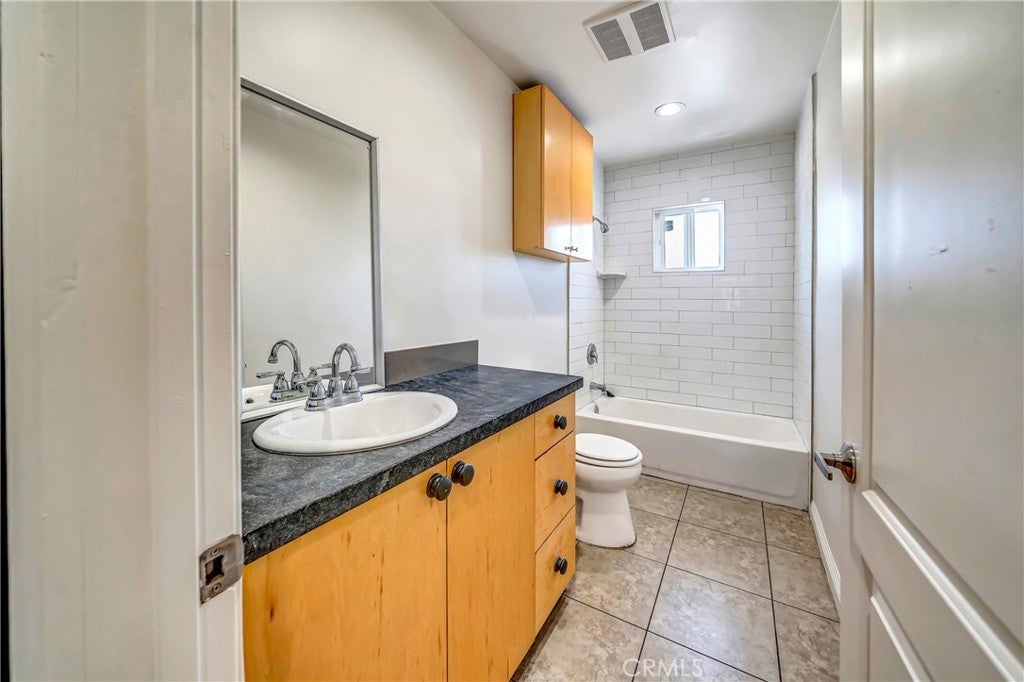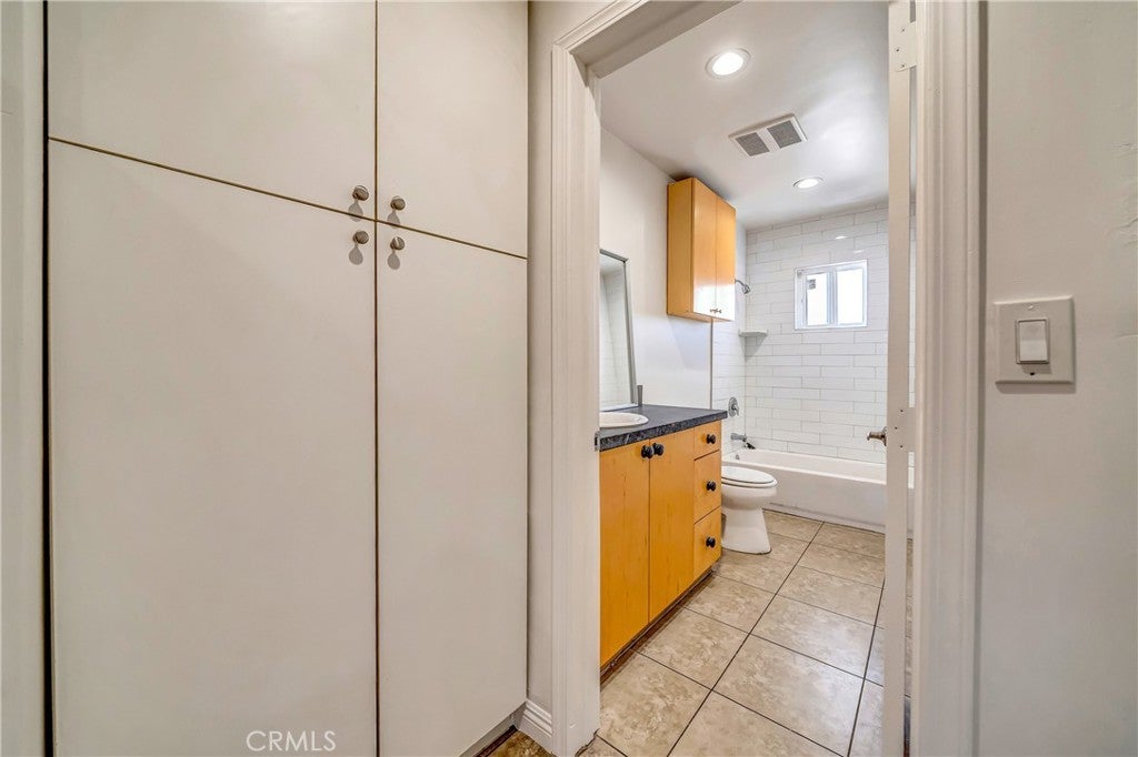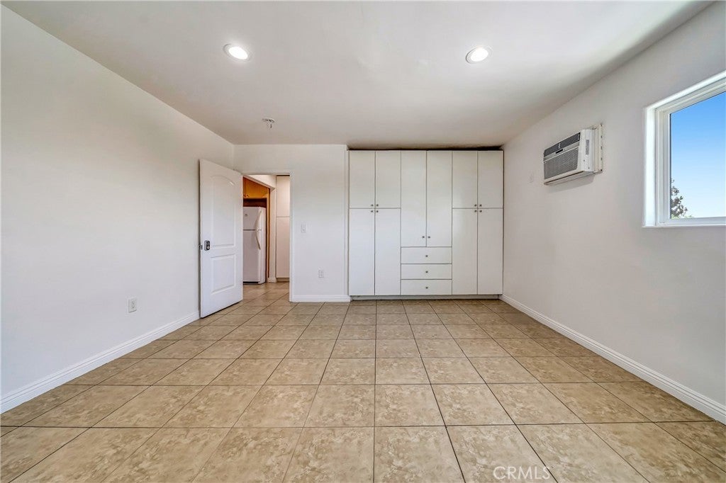 Welcome to this bright and spacious 1-bedroom, 1-bathroom apartment offering approximately 900 square feet of comfortable living space. Thoughtfully designed with functionality in mind, this unit is move-in ready and filled with natural light. The open kitchen features sleek granite countertops, ample cabinet storage in warm natural wood tones, and appliance including a gas stove. Overhead recessed lighting and a large window by the sink keep the space light and airy, making it ideal for everyday cooking and entertaining. The bedroom is generously sized with tile flooring throughout, a large window for natural light, and a built-in wall A/C unit for added comfort. You'll love the extensive built-in closet system featuring drawers, cabinets, and hanging space — perfect for staying organized. The bathroom is clean and well-appointed with a subway-tiled shower/tub combo, granite vanity counter, and modern fixtures. The warm wood cabinetry provides extra storage while keeping the space inviting.