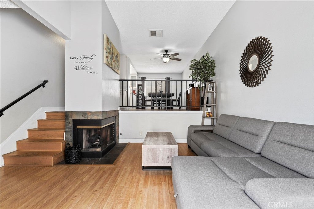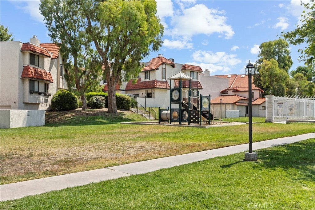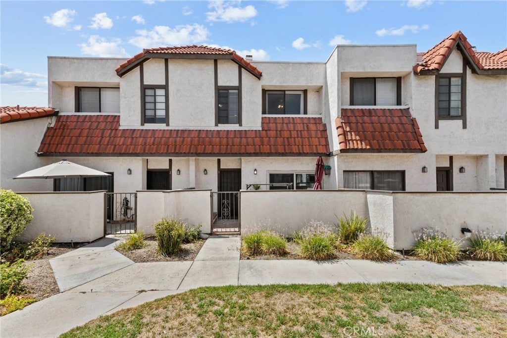 Stylish Townhome in Prime Tres Robles Location. Welcome to one of the best spots in Canyon Country’s highly sought-after Tres Robles community! This freshly updated 2-bedroom, 2.5-bath townhome offers the perfect blend of comfort, style, and value. As you enter through the gated front courtyard—perfect for weekend BBQs—and into an open, split-level layout with vaulted ceilings, rich wood-look flooring, and a cozy dual-sided fireplace that creates a warm, inviting space to relax or entertain. The bright kitchen features updated cabinetry, stainless steel appliances, and a charming garden window that brings in natural light all day. The adjacent elevated dining area is ideal for hosting friends or quiet meals at home. Upstairs, you’ll find two spacious ensuite bedrooms, each with their own full bathroom and large closets—including a walk-in in the primary suite. carpeting adds a soft, comfortable feel to the upper level. Enjoy the convenience of a direct-access 2-car garage with washer/dryer hookups, built-in storage, and extra room for your gear. Outside, take in mountain views and park-like greenbelts, or walk to the pool, spa, and playground just moments away. Located close to top-rated schools, local dining, shopping, Metrolink, scenic trails, and with easy freeway access, this home is ideal for first-time buyers, downsizers, or anyone seeking a smart move in a fantastic neighborhood. All this—and best of all, there’s No Mello Roos! Schedule your private showing today!