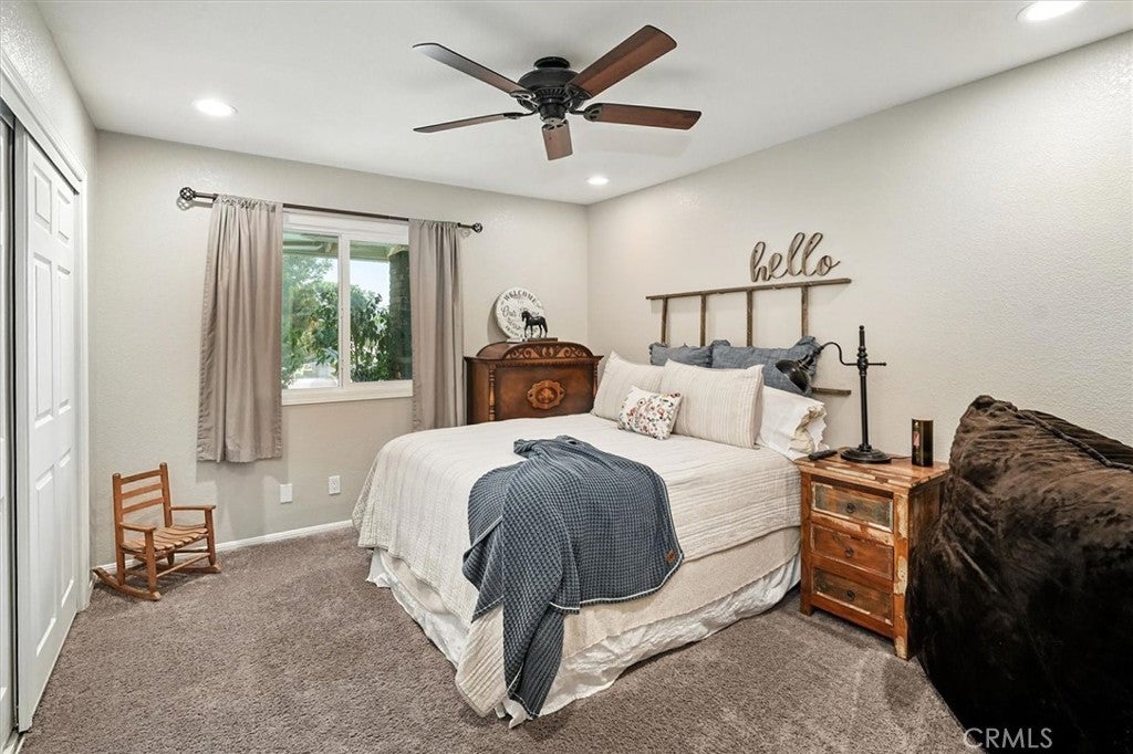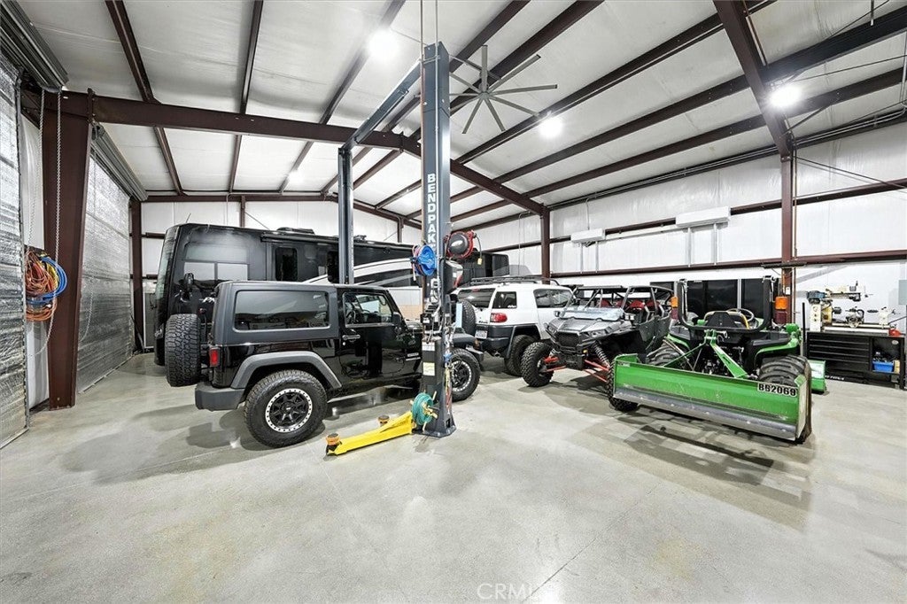 Welcome home! This beautiful ranch offers 4 bedrooms, 3 baths, 2260sqft home on over an acre of land. The interior has been nicely upgraded throughout with upgraded flooring, newer carpet, custom cabinets and countertops and stainless steel appliances. The open floor plan is perfect for entertaining and enjoying the views of the surrounding mountains. The show stopper is the endless list of added features. The property has a vineyard, greenhouse, above ground pool with deck, oversized jetted jacuzzi, horseshoe pit, 65 trees including 2 oak trees and a fruit orchard, garden house, and a massive 40ft x 60ft warehouse/workshop/RV Garage. The RV Garage is over 2400sqft with 2 huge 14ft x 14ft roll up doors. The entire garage is insulated and has 2 AC units to keep it cool. It has a second story mezzanine for storage and an added gym. Below is a laundry area, more storage, an office and a bathroom. To work on your toys there is a 10,000 pound car lift! The garage is wired with 50Amp for your RV and a dumping station. There is OWNED SOLAR (15KW) on the roof of the garage which powers the entire property and includes a 10KW backup for power storage. In addition there is a whole house backup generator so you are never without power. This property is one of a kind. Come see it!