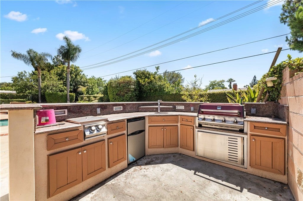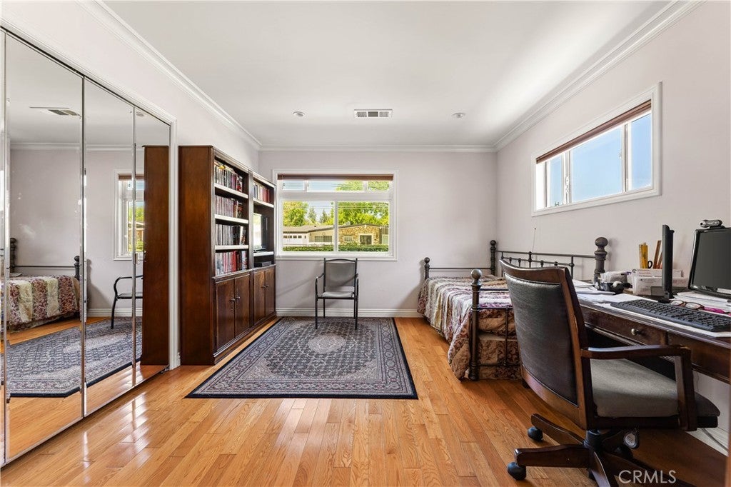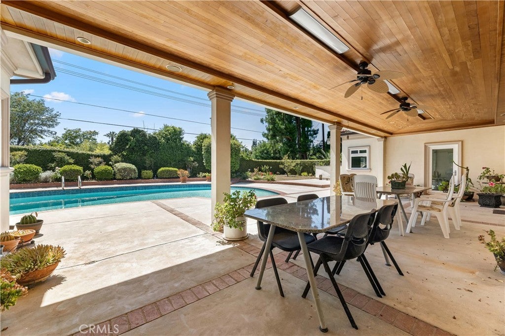 Now Price reduced!!! Don’t miss this opportunity — schedule your showing today! This stunning single-story residence is nestled in the highly desirable neighborhood of Woodland Hills, South of Ventura Boulevard. Enveloped by mature trees for ultimate privacy, this spacious 4-bedroom, 4-bathroom home offers 3,054 square feet of thoughtfully designed living space. Originally built in 1960 and tastefully rebuilt with permits in 2008, the home makes a grand first impression with double-door entry leading to an open-concept living and dining area. Soaring ceilings, rich hardwood floors, dual-pane windows, recessed lighting, and elegant French doors create an airy and inviting ambiance throughout. The formal living and dining rooms seamlessly flow to a serene, drought-tolerant backyard—an entertainer’s dream—featuring a sparkling pool, built-in BBQ, and ample space for gatherings and cocktail parties. At the heart of the home is a chef’s dream kitchen, complete with high-end appliances, striking countertops, and a show-stopping central island—ideal for family meals and entertaining. The home offers four generously sized bedrooms, including two luxurious primary suites. Find spa-inspired bathrooms with dual vanities, a custom-tiled walk-in steam shower, jetted Jacuzzi tub, and walk-in closets for ultimate comfort and convenience. Additional highlights include:Tile roof, a circular driveway, direct access to an attached 2-car garage, a Security system and so much more. Enjoy an unbeatable location just minutes from the Calabasas Farmers Market, The Commons, Westfield Topanga & The Village, fine dining, and top-rated schools. Easy freeway access makes commuting a breeze. With interest rates poised to drop, this turnkey gem is a rare opportunity to own a meticulously maintained home in one of Woodland Hills' most coveted areas. Schedule your private showing today and make this exceptional home yours.