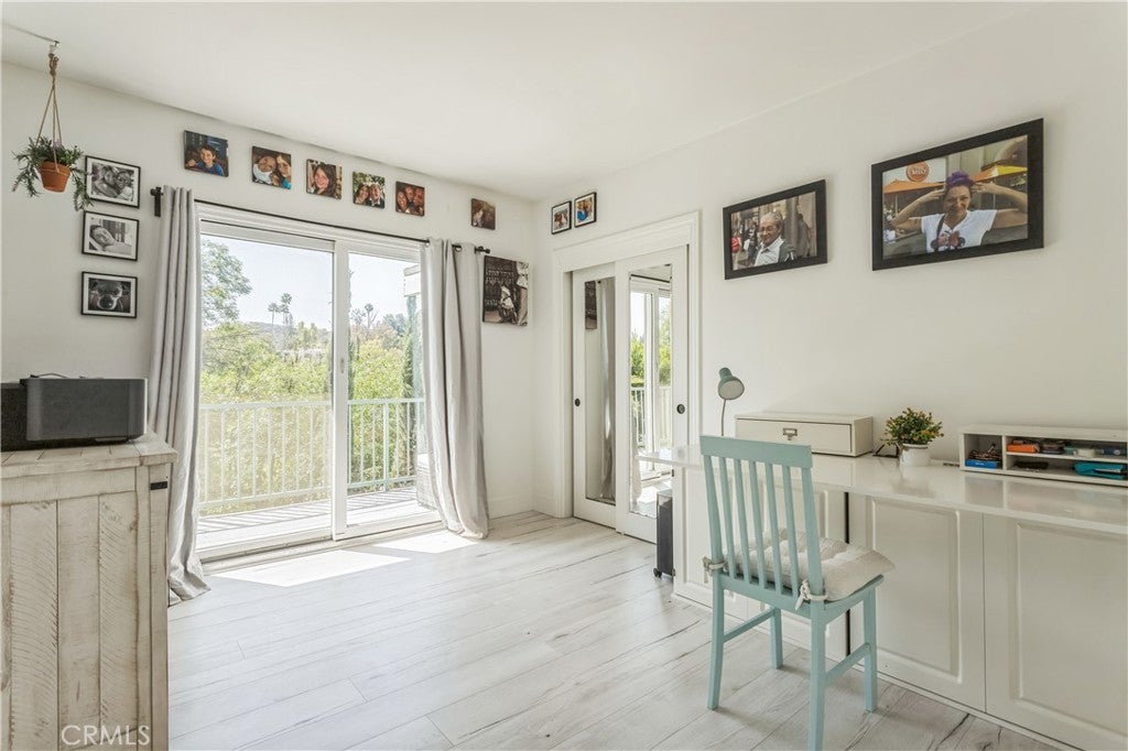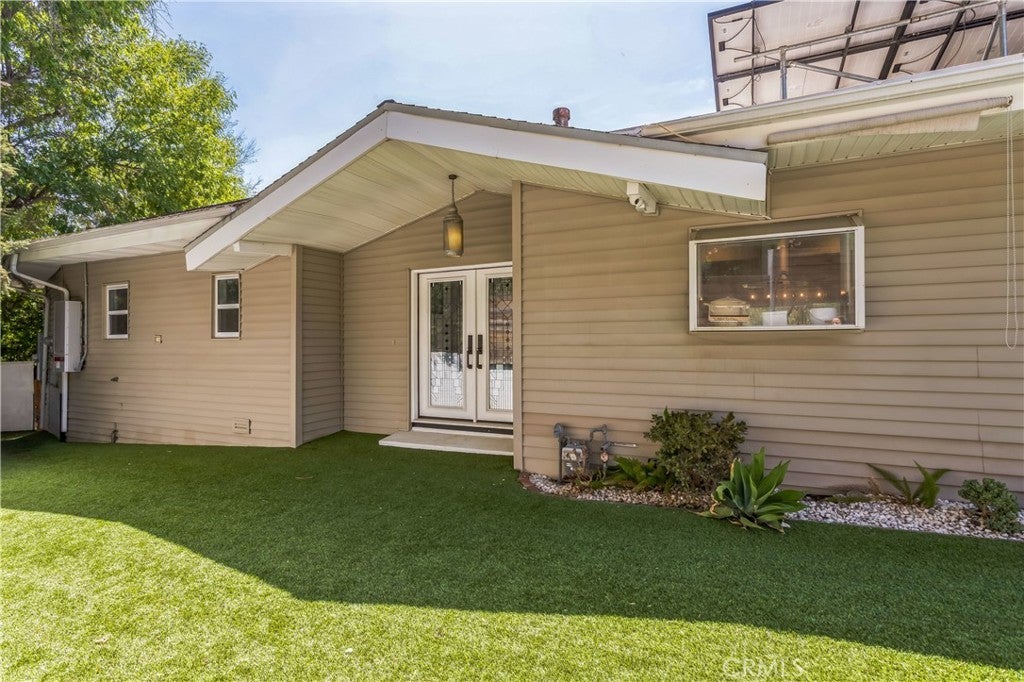 JUST REDUCED. Stunning Mid-Century Gem in Woodland Hills — South of the Boulevard Step into serenity in this gated hillside retreat, perfectly nestled in the lush, peaceful community of Woodland Hills. Surrounded by trees this South of the Boulevard 5 bedroom, 3 bathroom mid-century modern home offers the ideal blend of nature, privacy, and luxury. Behind double stained-glass doors, you'll find soaring beamed ceilings, skylights, white oak floors, and a spacious open-concept layout. The chef’s kitchen is outfitted with a Miele refrigerator, Viking stove, designer backsplash, new countertops, and a large island ideal for entertaining. Each bedroom opens to its own deck with sweeping hillside views, while the backyard features an above-ground pool, multiple lounge areas, and gated parking. Property comes furnished. Recent upgrades include a brand-new HVAC system (2025), new water heater (2024), fully paid solar panels, security system, water softener, and included alarm, gardener, and pool service. Minutes from Trader Joe’s, Whole Foods, The Village, and the Woodland Hills Country Club.