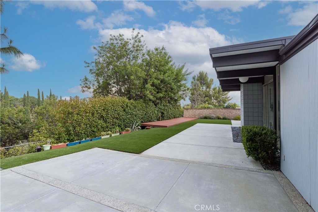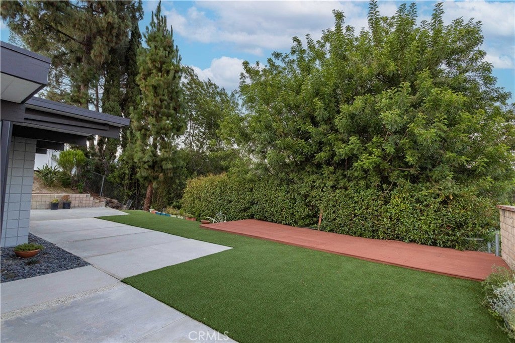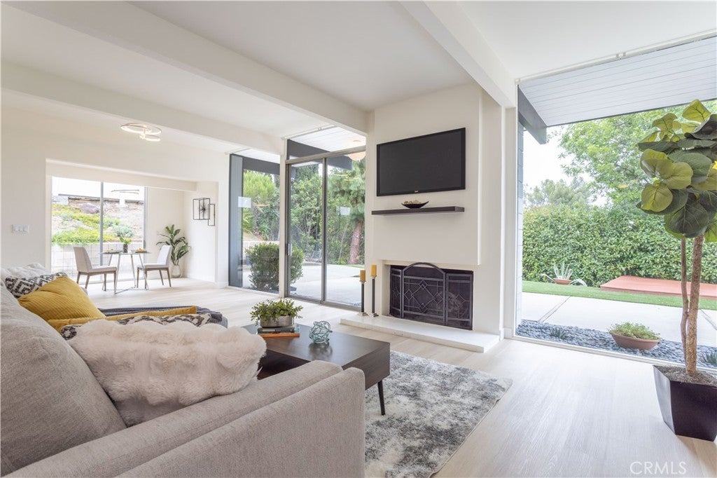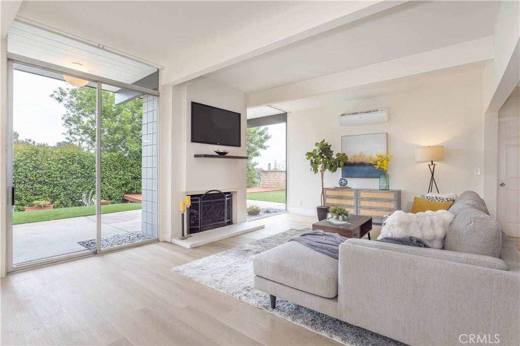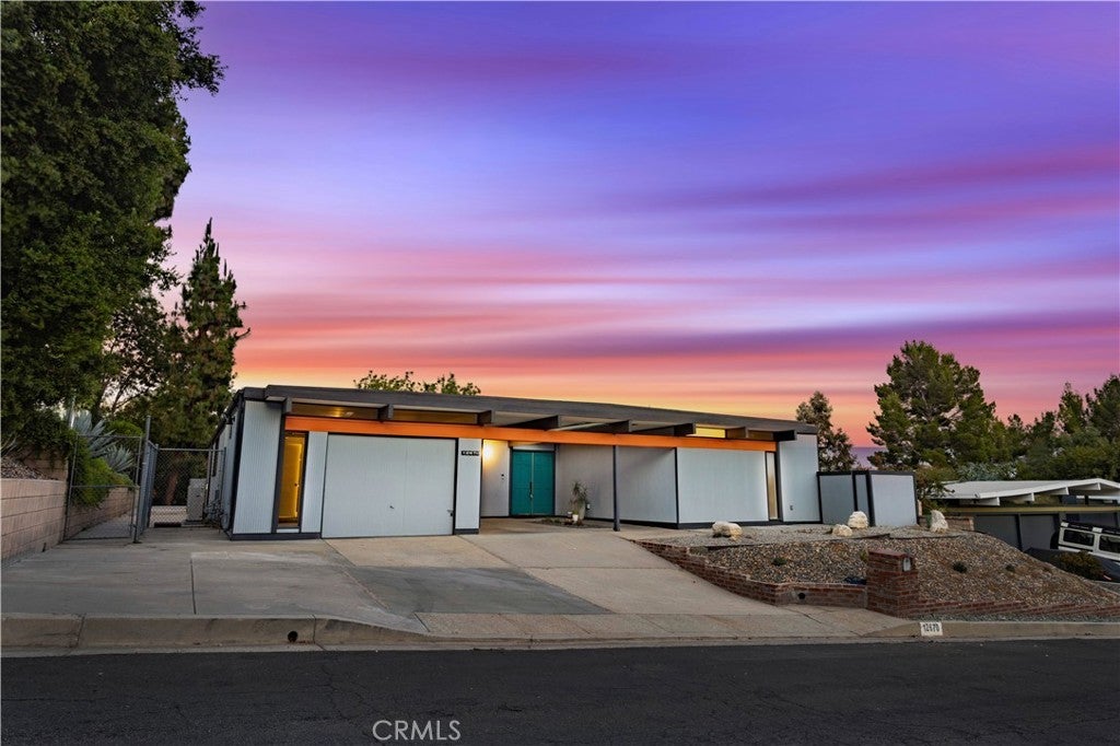 Dreaming of a totally updated mid-century modern home in Granada Hills with iconic architecture and open-concept living? This non-contributory Eichler home was originally designed by renowned architect A. Quincy Jones and has been completely remodeled with modern finishes while preserving its iconic charm. Featuring 4 bedrooms and 2 bathrooms, this light-filled home offers a massive great room with an ultra-open layout, brand-new kitchen with waterfall-edge quartz countertops, stainless steel appliances, subway tile backsplash, new cabinetry, an eat-in area, formal dining space, and a large island with room for stools. Enjoy multiple sitting areas, a cozy living room fireplace, new flooring throughout, and tons of recessed lighting. The primary suite includes a white wood ceiling, walk-in closet, and attached updated bathroom, while the three additional bedrooms share a beautifully remodeled hallway bath. There’s also an inside laundry area and an open, airy design with plenty of windows. Step outside to enjoy the low-maintenance backyard with artificial grass, a spacious deck, and multiple areas perfect for relaxing or entertaining outdoors. Located north of Rinaldi in Granada Hills, this mid-century modern home sits within the Balboa Highlands Historic Preservation Overlay Zone. Whether you're a fan of mid-century design, Eichler architecture, or simply moving to Granada Hills for its parks, hiking trails, top schools, or easy freeway access, this modernized Eichler-inspired home is not to be missed.
