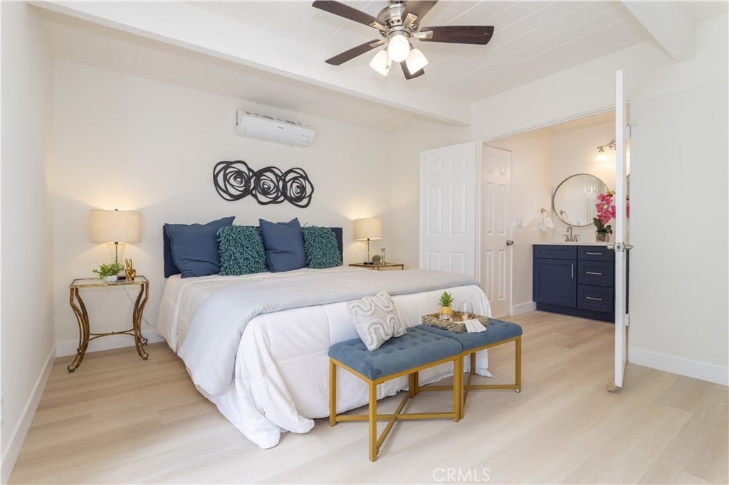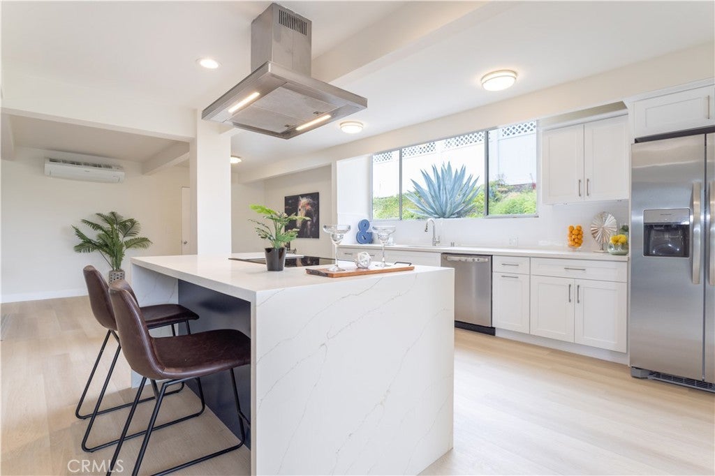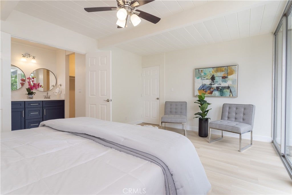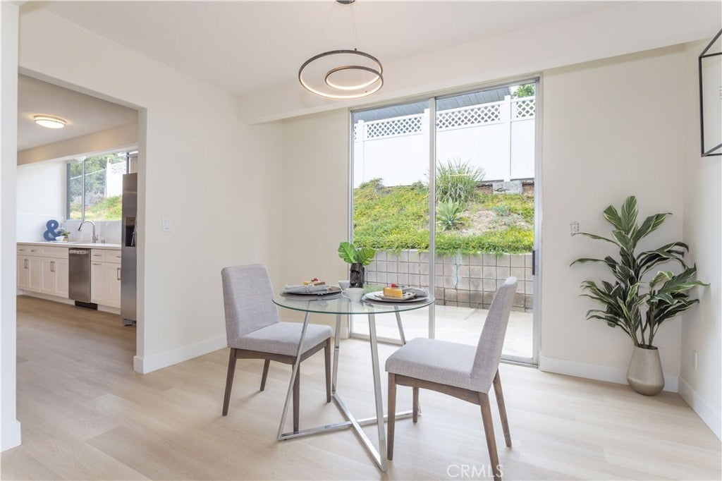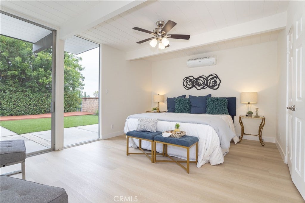 Dreaming of a totally updated mid-century modern home in Granada Hills with iconic architecture and open-concept living? This non-contributory Eichler home was originally designed by renowned architect A. Quincy Jones and has been completely remodeled with modern finishes while preserving its iconic charm. Featuring 4 bedrooms and 2 bathrooms, this light-filled home offers a massive great room with an ultra-open layout, brand-new kitchen with waterfall-edge quartz countertops, stainless steel appliances, subway tile backsplash, new cabinetry, an eat-in area, formal dining space, and a large island with room for stools. Enjoy multiple sitting areas, a cozy living room fireplace, new flooring throughout, and tons of recessed lighting. The primary suite includes a white wood ceiling, walk-in closet, and attached updated bathroom, while the three additional bedrooms share a beautifully remodeled hallway bath. There’s also an inside laundry area and an open, airy design with plenty of windows. Step outside to enjoy the low-maintenance backyard with artificial grass, a spacious deck, and multiple areas perfect for relaxing or entertaining outdoors. Located north of Rinaldi in Granada Hills, this mid-century modern home sits within the Balboa Highlands Historic Preservation Overlay Zone. Whether you're a fan of mid-century design, Eichler architecture, or simply moving to Granada Hills for its parks, hiking trails, top schools, or easy freeway access, this modernized Eichler-inspired home is not to be missed.