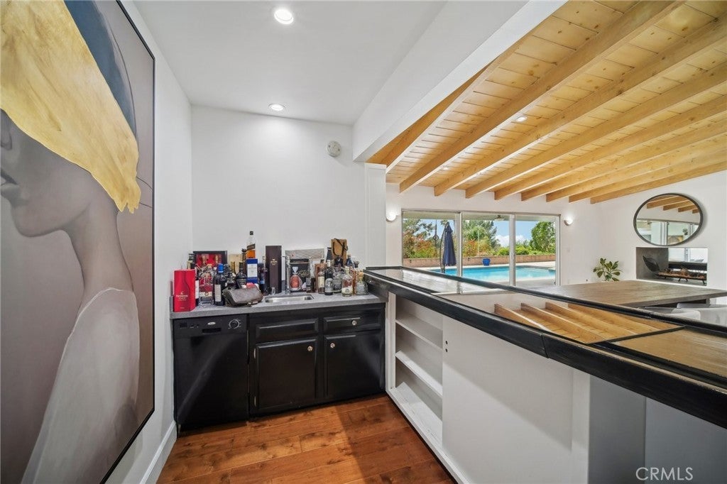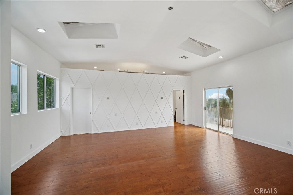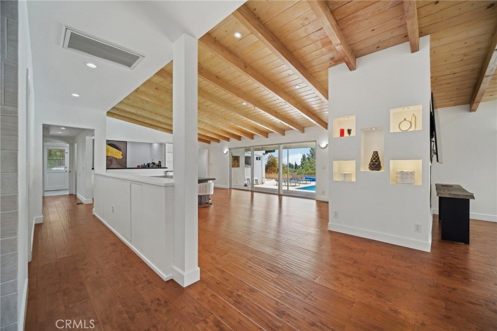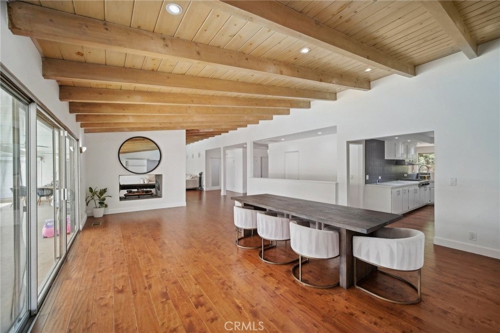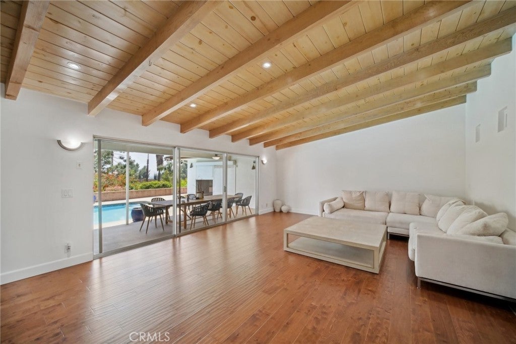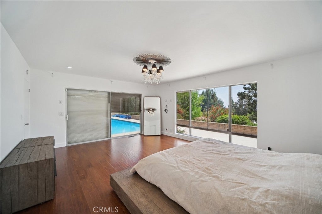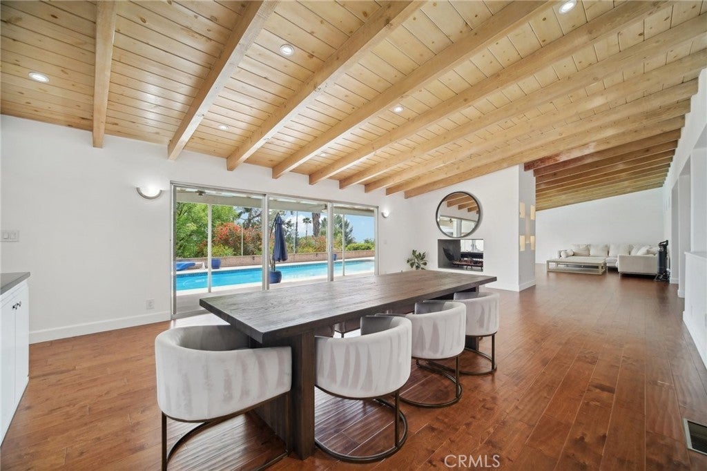 An exquisite, ultra-private entertainers home awaits you in the prestigious community of Knollwood Estates. This stunning immaculate 6 bedroom/7 bath home is full of character and charm. A modern feel with a twist of Mid Century. Super private 17, 358 sq/ft lot, that is set back off the street, allowing for tree top and city views. The moment you walk in you are greeted by the mesmerizing wood beamed vaulted ceilings and the view of the relaxing pool and treetops beyond the oversized glass sliders. Large eat in kitchen with center island, tons of cabinets/storage and stainless steel appliances. Butlers’ kitchen/pantry area is strategically situated with commercial-style fridge, sink, double oven and more storage. 2 primary suites one at each wing of the home. 1st Primary suite is located upstairs with skylights, oversized seating area, wrap-around walk-in closet , heated bathroom floors and balcony with amazing city & pool views. 2nd primary suite located on the main level also has relaxing views of the pool & tree tops, ample windows/glass sliders, oversized walk-in closet, his and hers bathrooms and even a relaxing/meditation outdoor area created off master bath. Enhance your health with your very own private infrared sauna! All bedrooms are good sized with plenty of storage space. Entertainers yard with heated pool, covered patio area, outdoor bathroom w/shower and several different areas to entertain throughout the large lot. NO detail has been spared. Some other features include oversized double fireplace, 3 HVAC zones, paid off/owned solar, exterior roll down blinds and so much more.