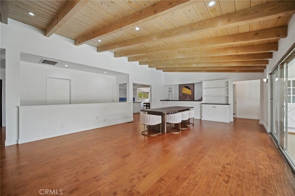 Beamed Ceilings, Wet Bar, Balcony, Breakfast Area, Separate/Formal Dining Room, High Ceilings, Recessed Lighting, Track Lighting, Main Level Primary, Primary Suite, Walk-In Closet(s)