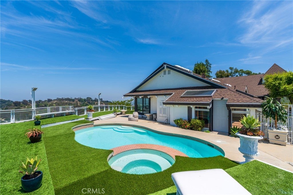 Nestled atop the prestigious, guard-gated Casiano Estates on Mulholland Drive, this newly remodeled luxury residence offers an exceptional blend of privacy, elegance, and sweeping panoramic views of both the Westside and the San Fernando Valley. Situated on over 32,000 sq. ft. of prime real estate, this home is meticulously designed to offer the ultimate in indoor-outdoor living. The expansive wrap-around patio with a built-in bar provides an ideal setting for entertaining, while the impressive 6,000 sq. ft. deck and pool area offer breathtaking 280-degree vistas. Featuring 4 spacious bedrooms and 4.5 baths, this home includes two fully remodeled bathrooms, and each bedroom is complemented by an ensuite for maximum comfort and privacy. The main-level master suite is a true sanctuary, featuring a generous walk-in closet and direct access to the pool, jacuzzi, and sauna. A gated driveway with a Ring security camera leads to a two-car garage, with additional parking for up to eight vehicles, accommodating oversized cars or RVs. Additional highlights include a wine cellar, an outdoor shower with an adjacent washer and dryer, and close proximity to Stephen S. Wise Temple. Updated in 2022, this Bel Air estate embodies the pinnacle of luxury living, offering unparalleled location, design, and amenities in one of Los Angeles’ most coveted neighborhoods.