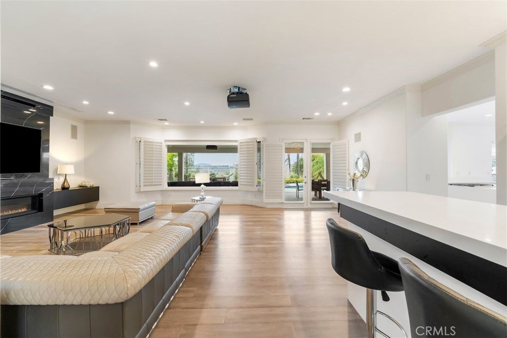Rare opportunity to own a stunning 8,000+ sq ft luxury smart home located in the highly coveted guard-gated community of Mountain View Estates in Calabasas. This fully upgraded residence features a grand entry with soaring ceilings, leading to a remodeled gourmet kitchen with Sub-Zero, Wolf & Miele appliances, custom cabinetry & walk-in pantry. Control4 home automation, LED lighting, Cat 6 wiring & whole-house sound system throughout. Expansive family room with fireplace, custom bar, built-in projector, and dual wine coolers—ideal for entertaining and movie nights. Oversized dining room seats 30+ comfortably. Luxurious master suite offers a sitting area, fireplace, dual walk-in closets & spa-style bath with steam shower. Resort-style backyard features a saltwater pool, outdoor kitchen (BBQ, fridge, stove, warming drawer), multiple covered seating areas & outdoor projector. Additional highlights include a soundproof podcast studio & 100+ bottle temp-controlled wine room. A true entertainer’s dream in one of Calabasas’ most prestigious communities!