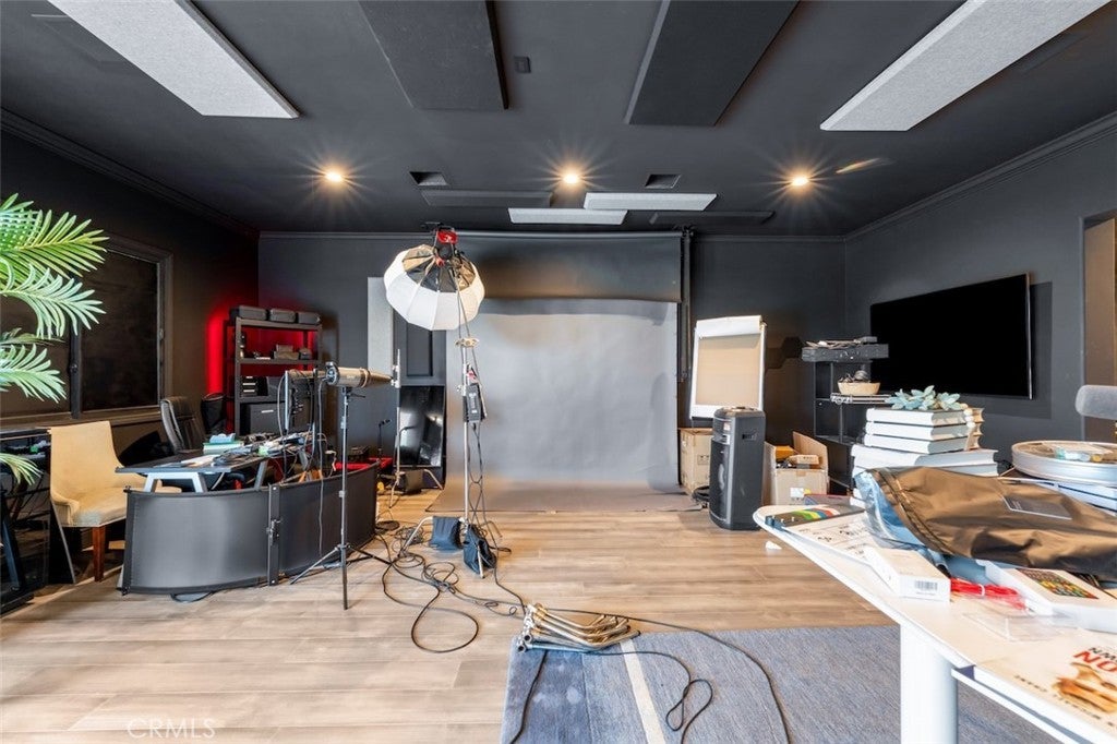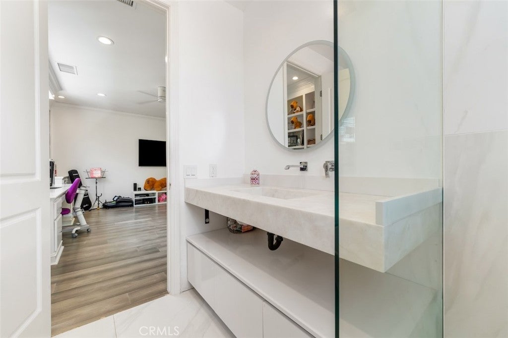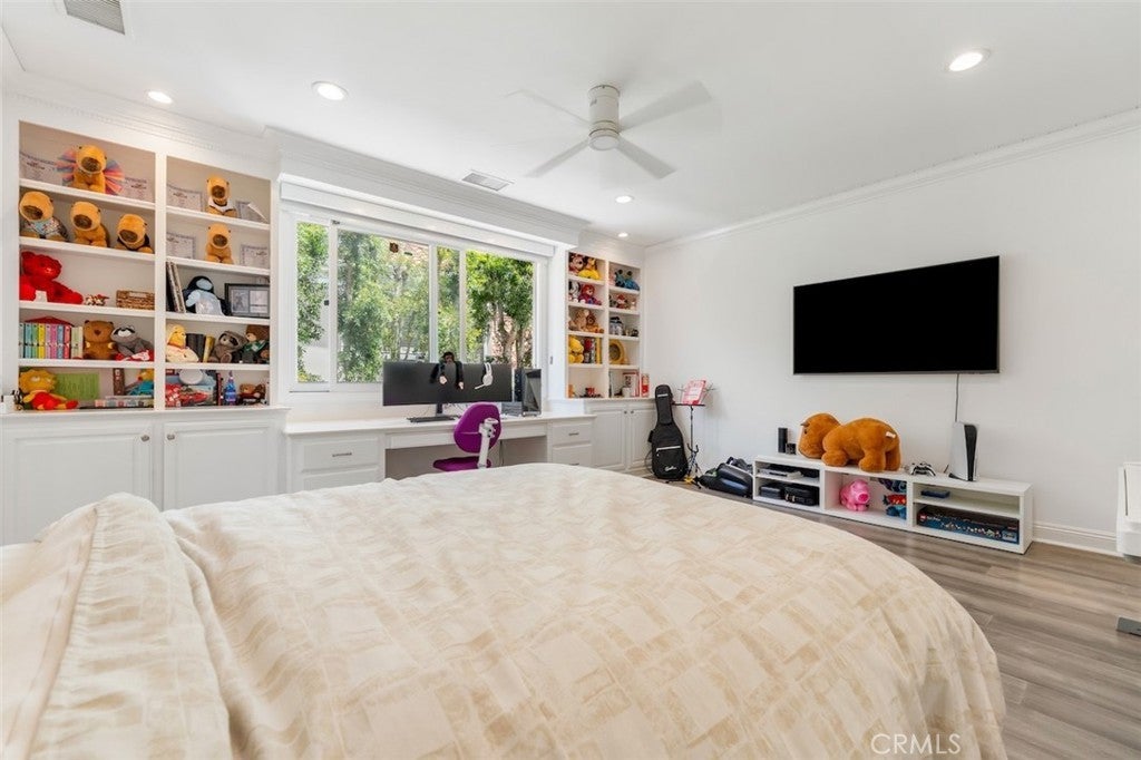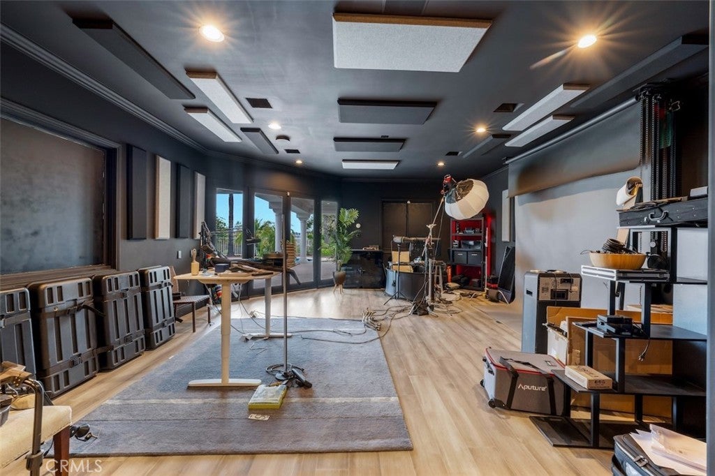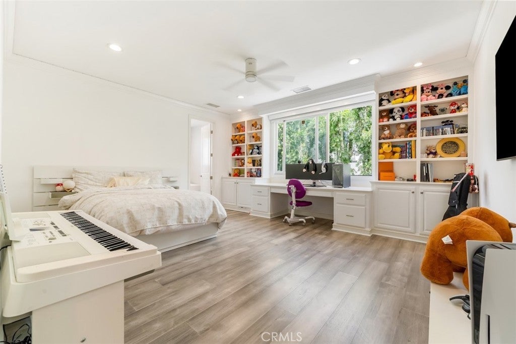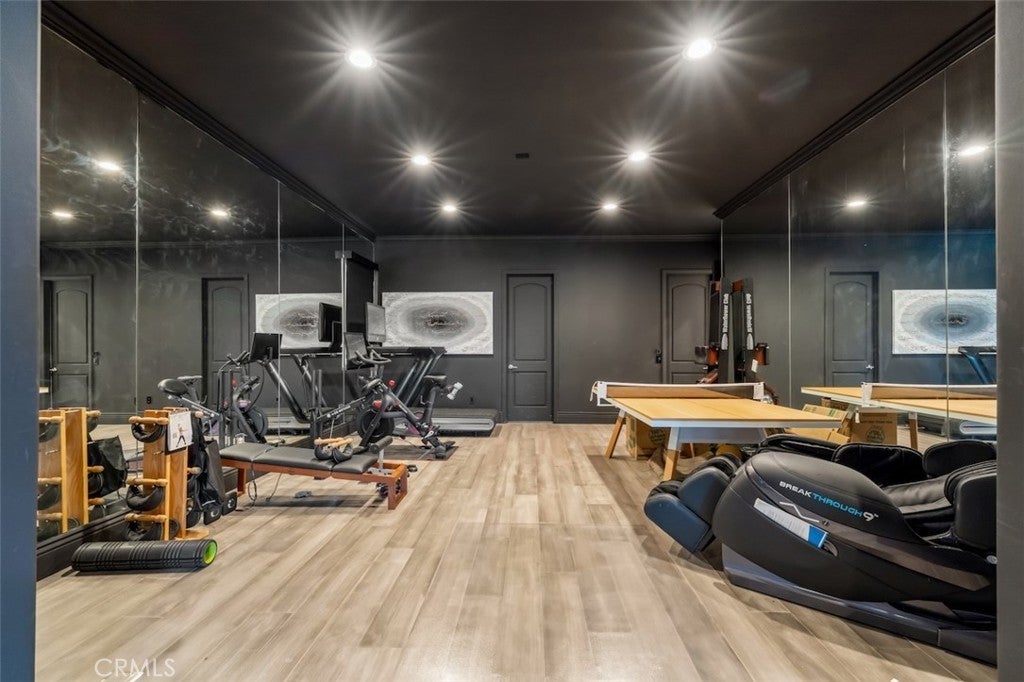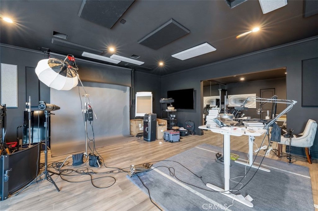 A rare opportunity to own an extraordinary 8,000+ sq ft luxury smart home set within a prestigious guard-gated Calabasas community. This fully upgraded residence showcases a dramatic grand entry with soaring ceilings, leading to a beautifully remodeled gourmet kitchen featuring Sub-Zero, Wolf, and Miele appliances, custom cabinetry, and a generous walk-in pantry. Designed for elevated modern living, the home is outfitted with Control4 home automation, LED lighting, Cat-6 wiring, and a whole-house sound system. The expansive family room is ideal for both entertaining and everyday comfort, complete with a fireplace, custom bar, built-in projector, and dual wine coolers—perfect for movie nights and gatherings. An oversized formal dining room comfortably accommodates 30+ guests. The luxurious primary suite serves as a private retreat with a sitting area, fireplace, dual walk-in closets, and a spa-inspired bath featuring a steam shower. Step outside to a resort-style backyard offering a saltwater pool, outdoor kitchen with BBQ, refrigerator, stove, and warming drawer, multiple covered seating areas, and an outdoor projector—creating the ultimate indoor-outdoor lifestyle. Additional highlights include a soundproof podcast studio and a temperature-controlled wine room capable of housing over 100 bottles. A true entertainer’s dream located in one of Calabasas’ most desirable gated neighborhoods.